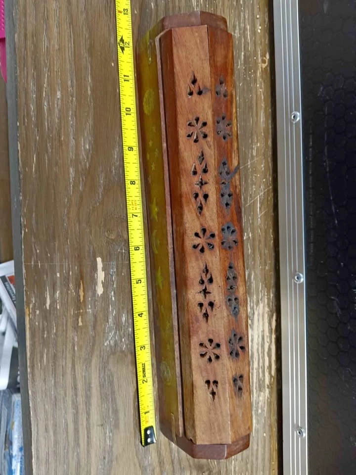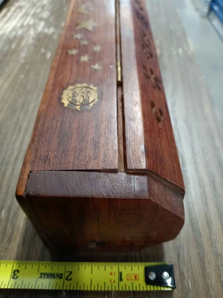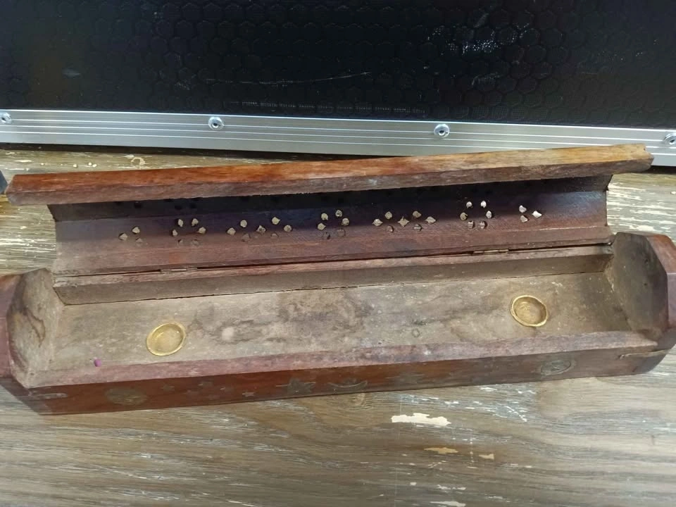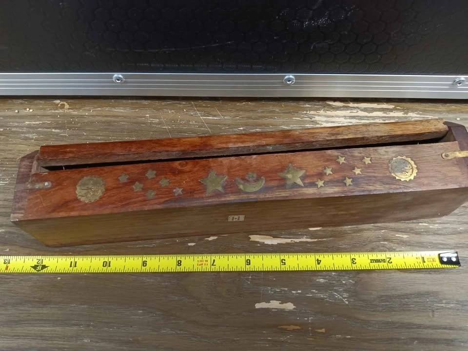 Vintage Wooden Incense Burner Box with Brass Inlays