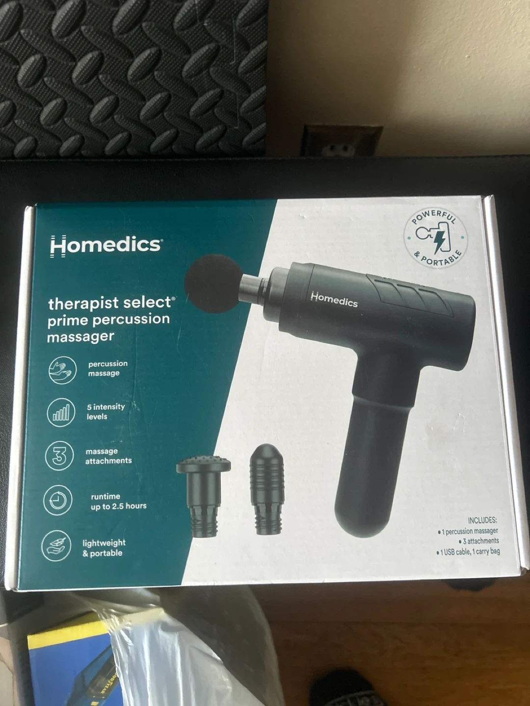 This HoMedics percussion massager offers powerful and portable relief. It features 5 intensity levels and comes with 3 massage attachments. Runtime is up to 2.5 hours.