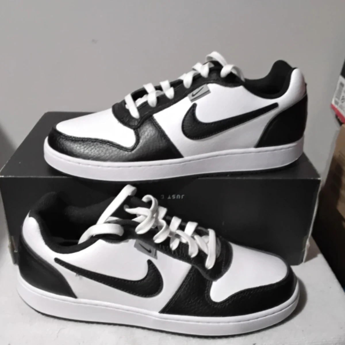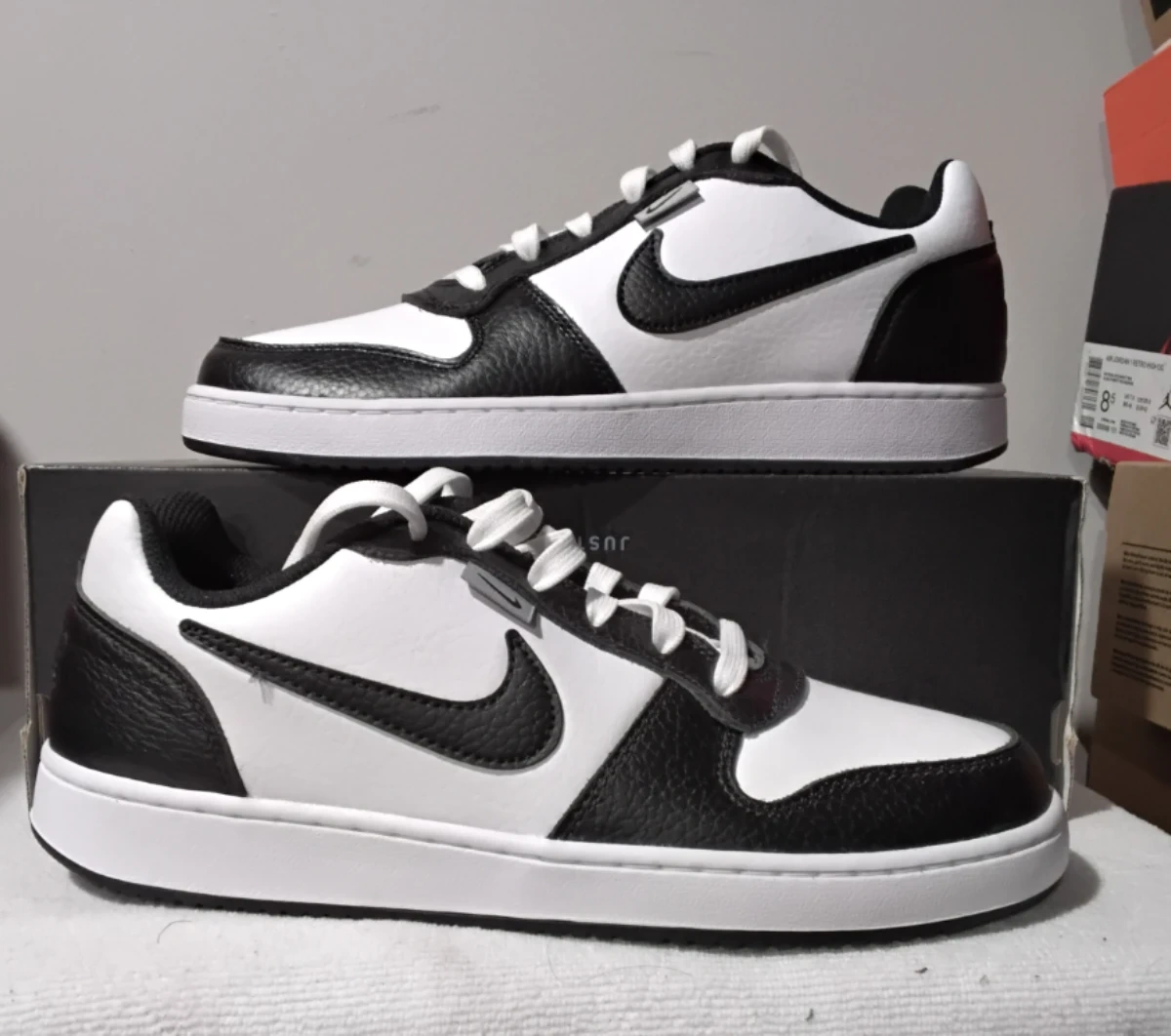 Nike Court Vision Low shoes in black and white. These sneakers feature a durable leather construction and a classic silhouette. Rubber outsole for traction.