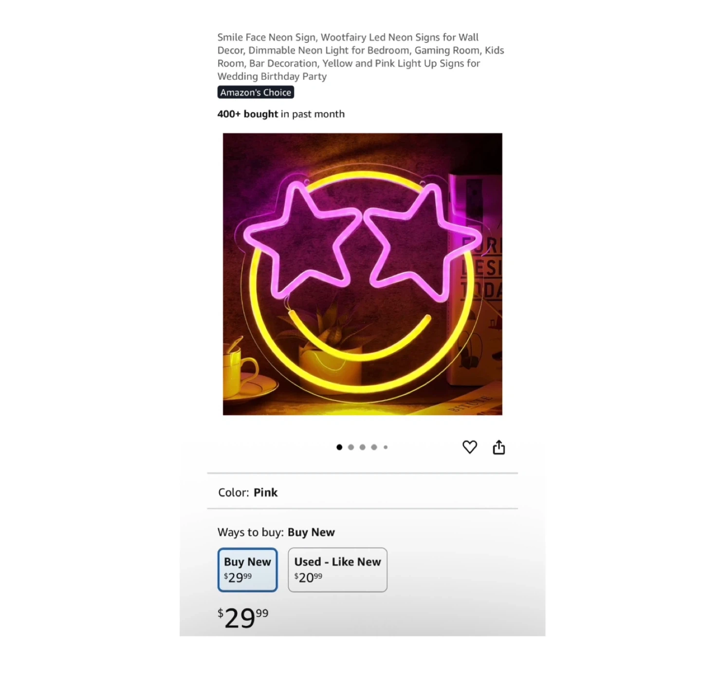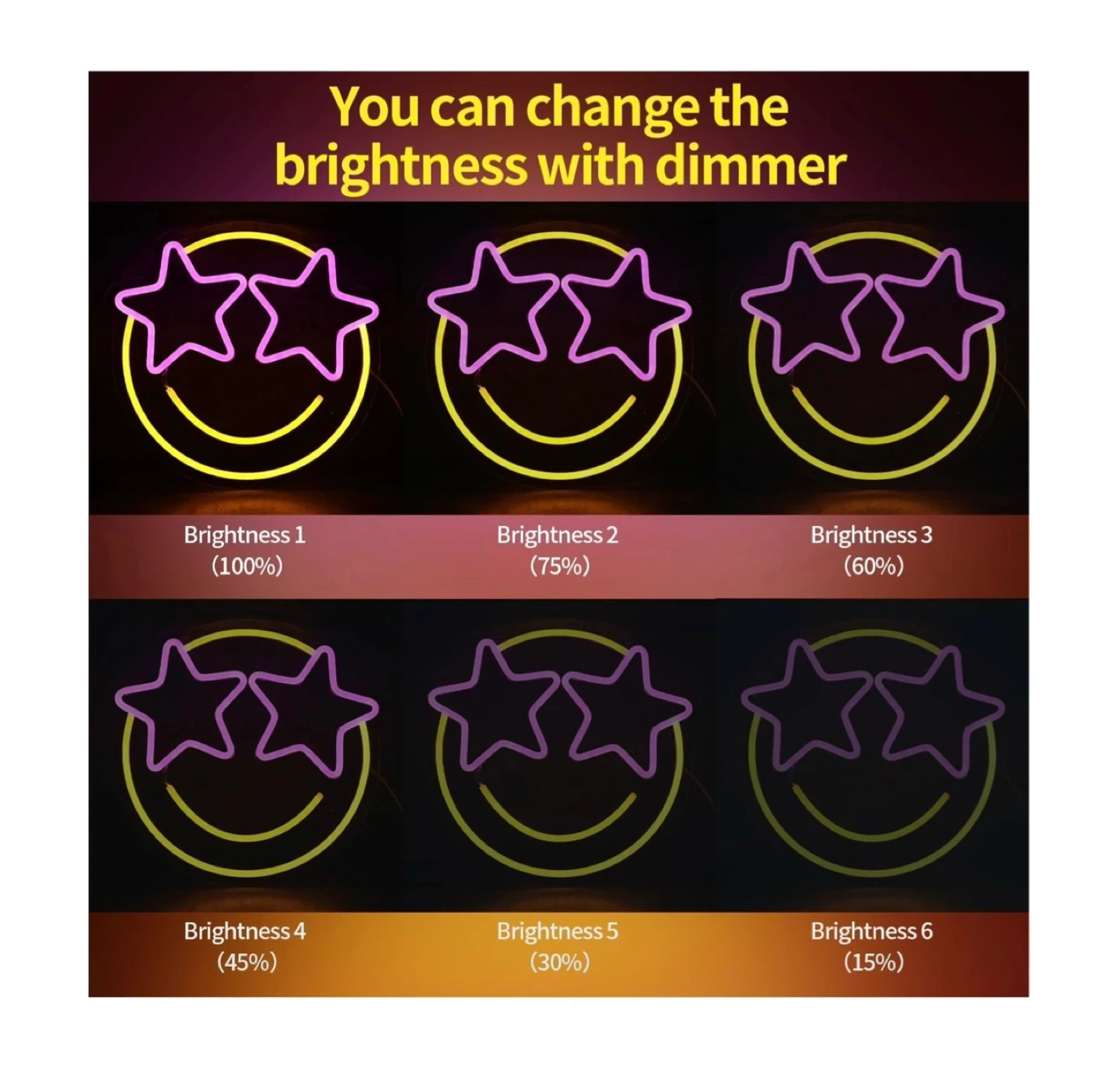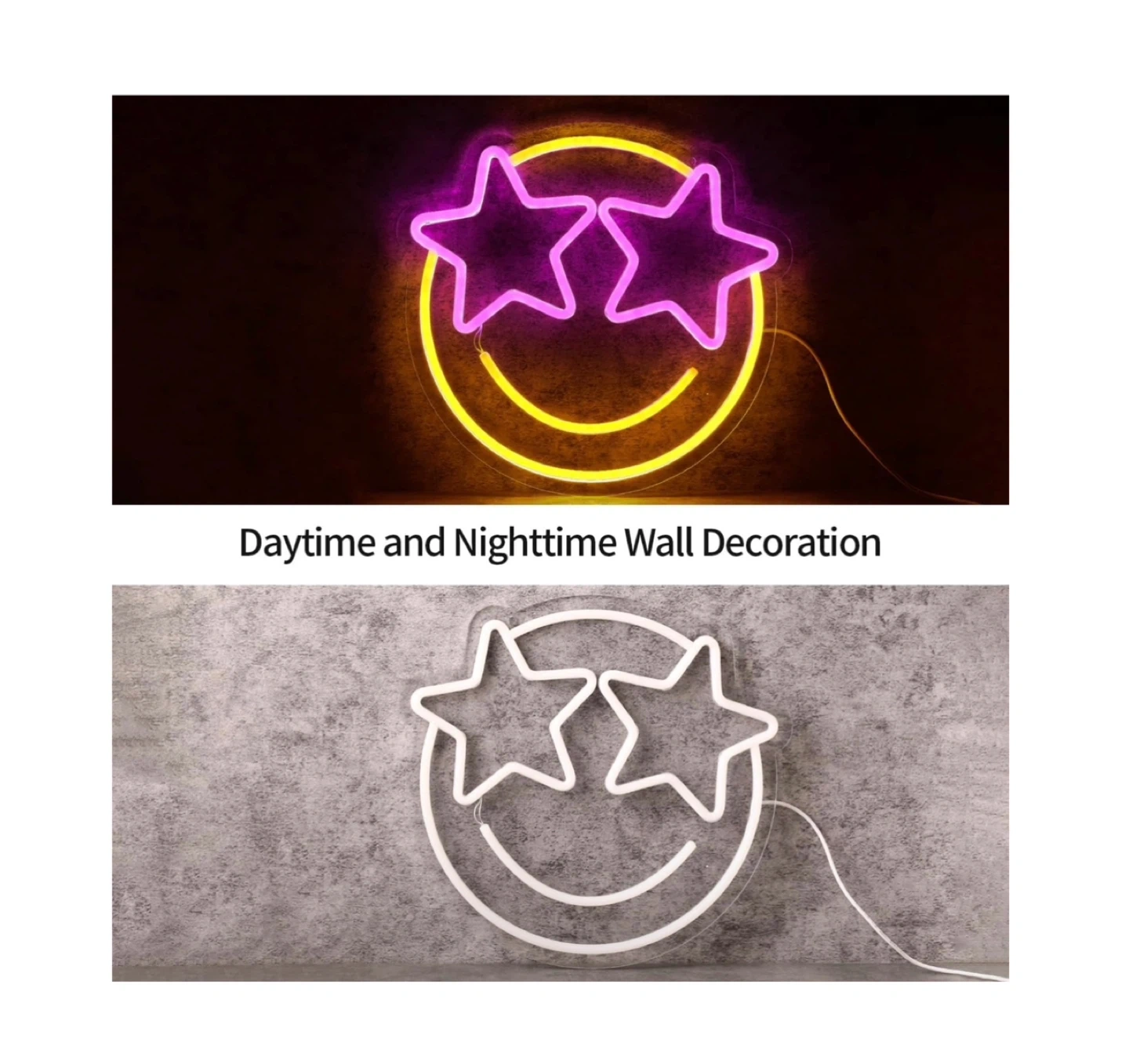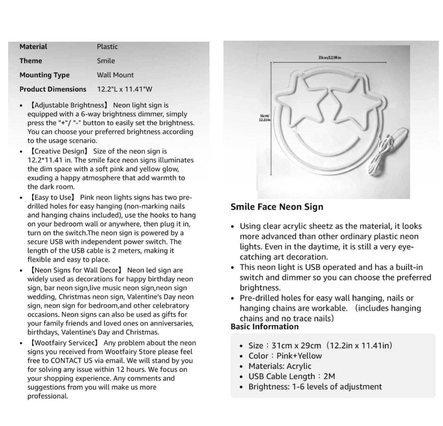 Brand new Smile Face Neon Sign, Wootfairy Led Neon Signs for Wall Decor, Dimmable Neon Light for Bedroom, Gaming Room, Kids Room, Bar Decoration, Yellow and Pink Light Up Signs for Wedding Birthday Party