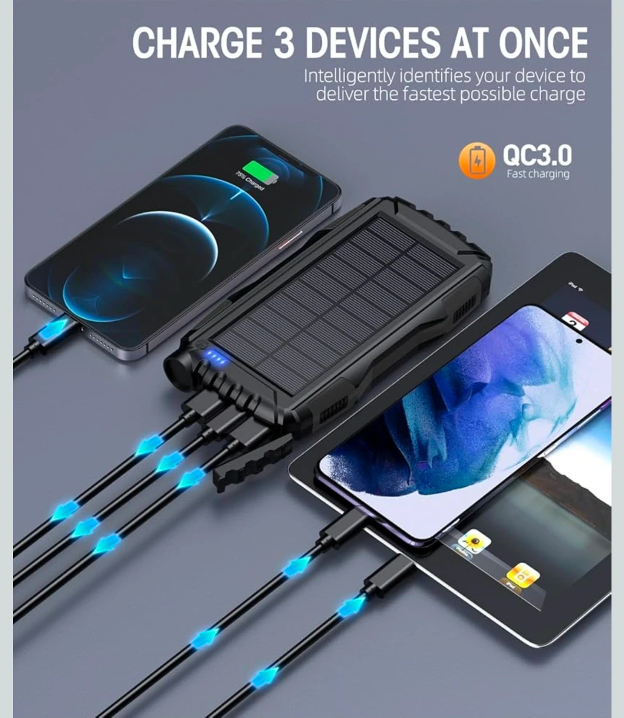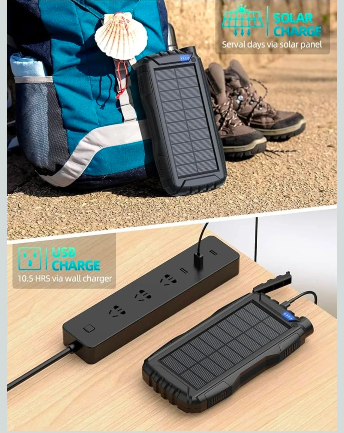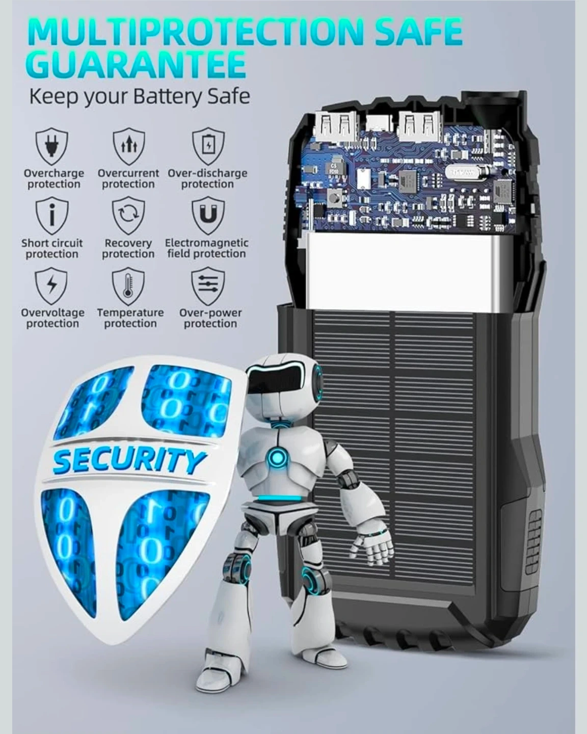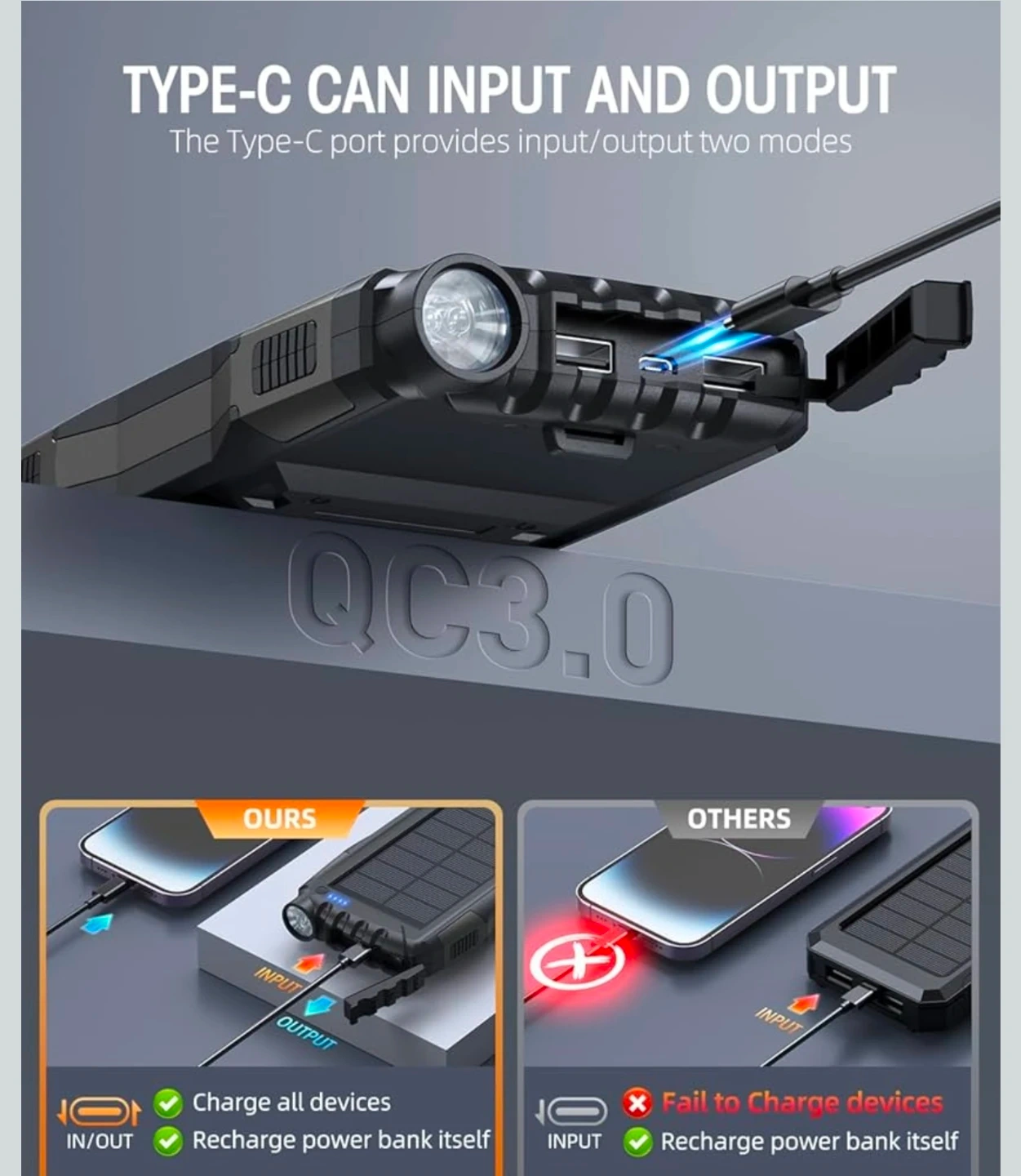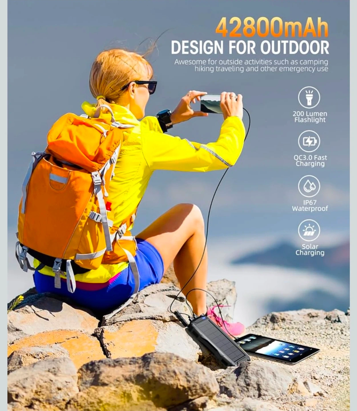 Solar Charger Power Bank 42800mAh, Portable Charger, Solar Power Bank,External Battery Pack 5V3.1A Qc 3.0 Fast Charger Built-in Super Bright Flashlight