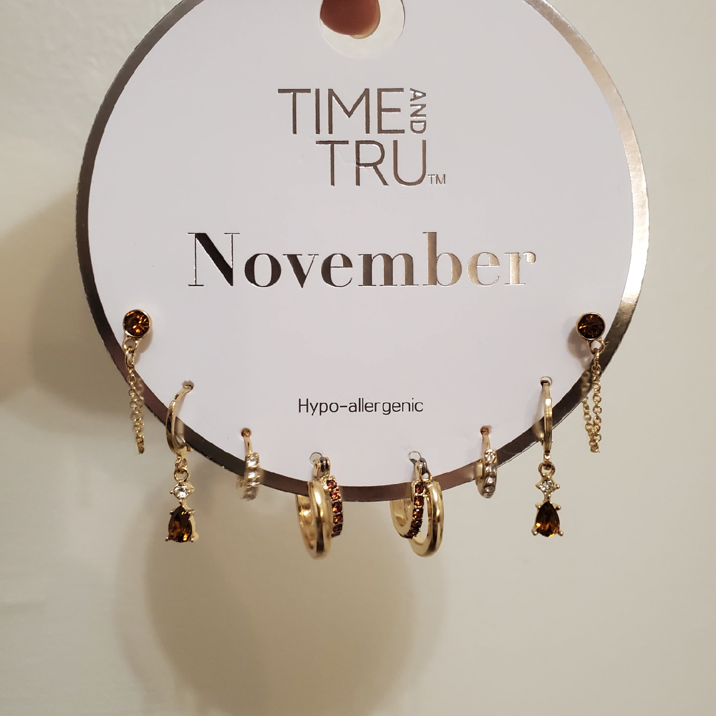 Here's a set of Time and Tru earrings, perfect for adding a little sparkle to your look! This set is hypoallergenic and includes a variety of styles.