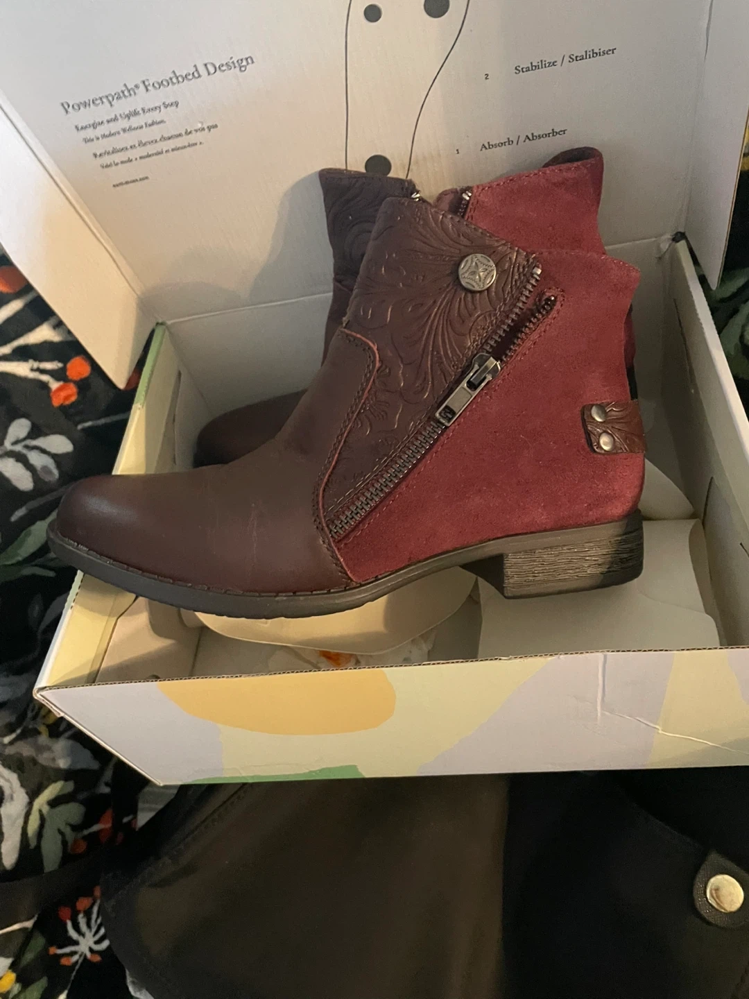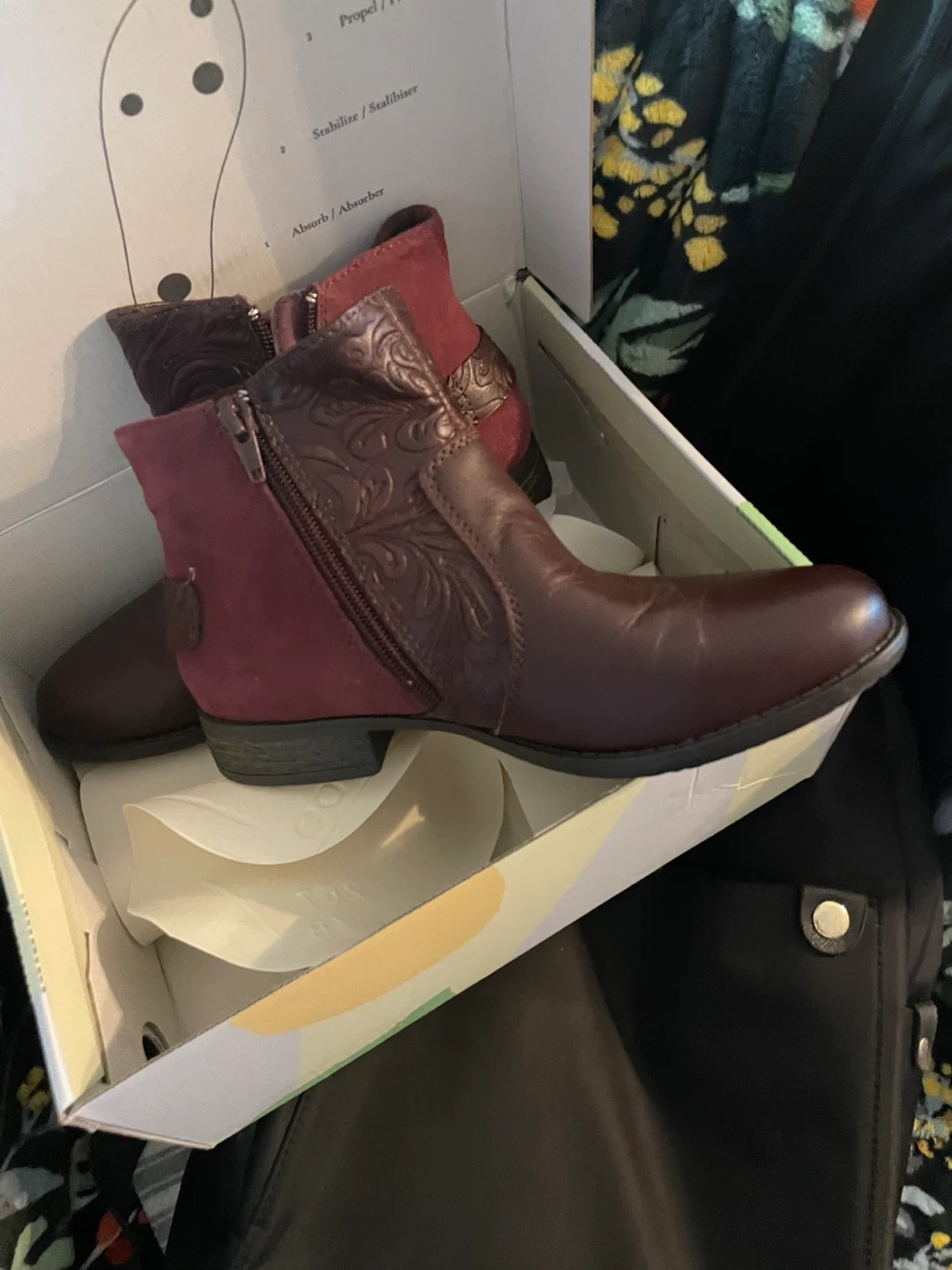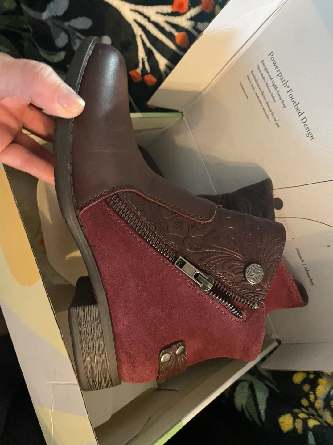 10Earth Origins Navigate Noah ankle booties in size 6.5. These stylish booties feature a leather and synthetic upper in a beautiful merlot color. They come with the original box