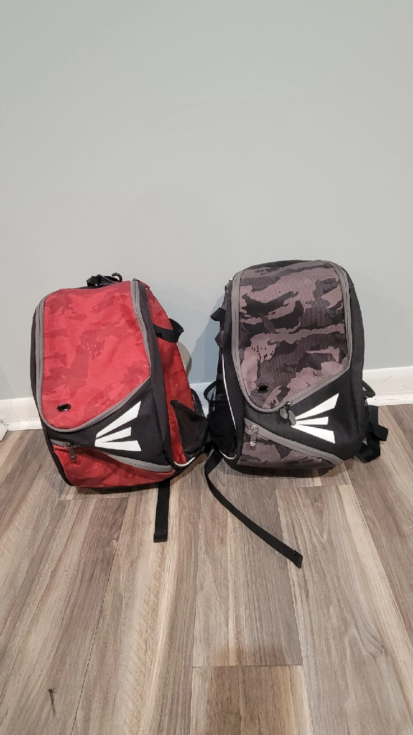60Two Easton baseball backpacks in good condition! One is red camo and the other is a gray/black camo pattern. Perfect for carrying your gear to the field! You can buy both or each individually for $18.