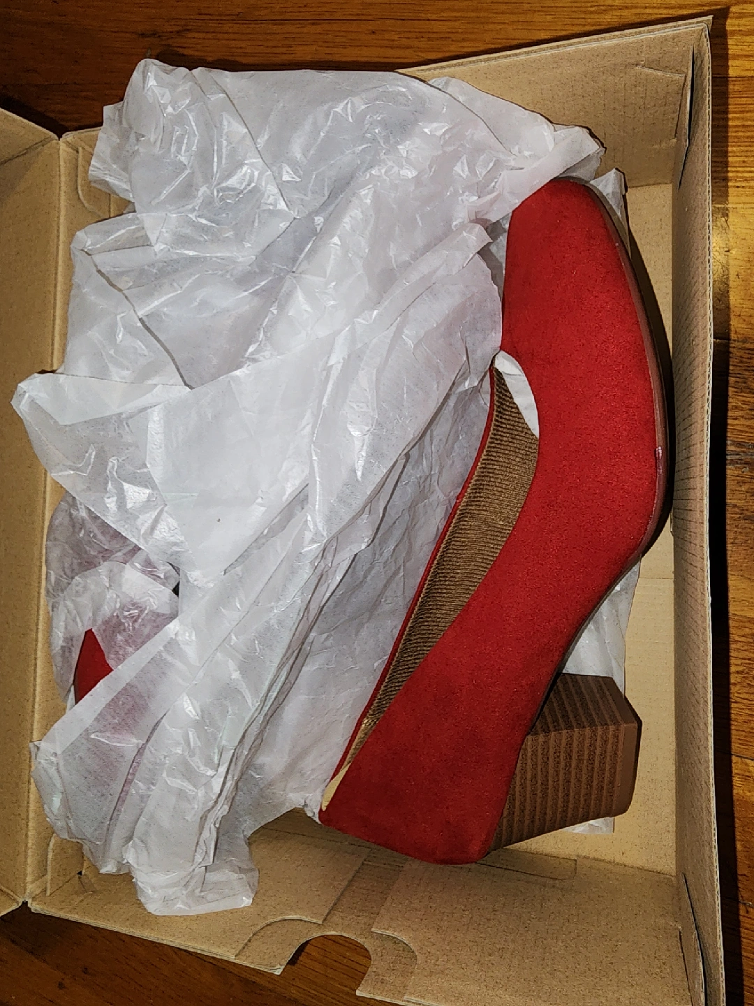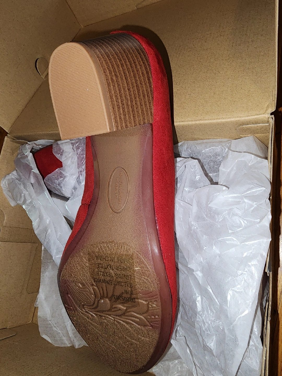 I'm selling a pair of Easy Street women's dress heels in red. They are a size 8.5M and come with the original box