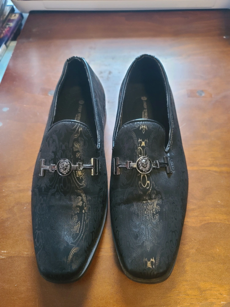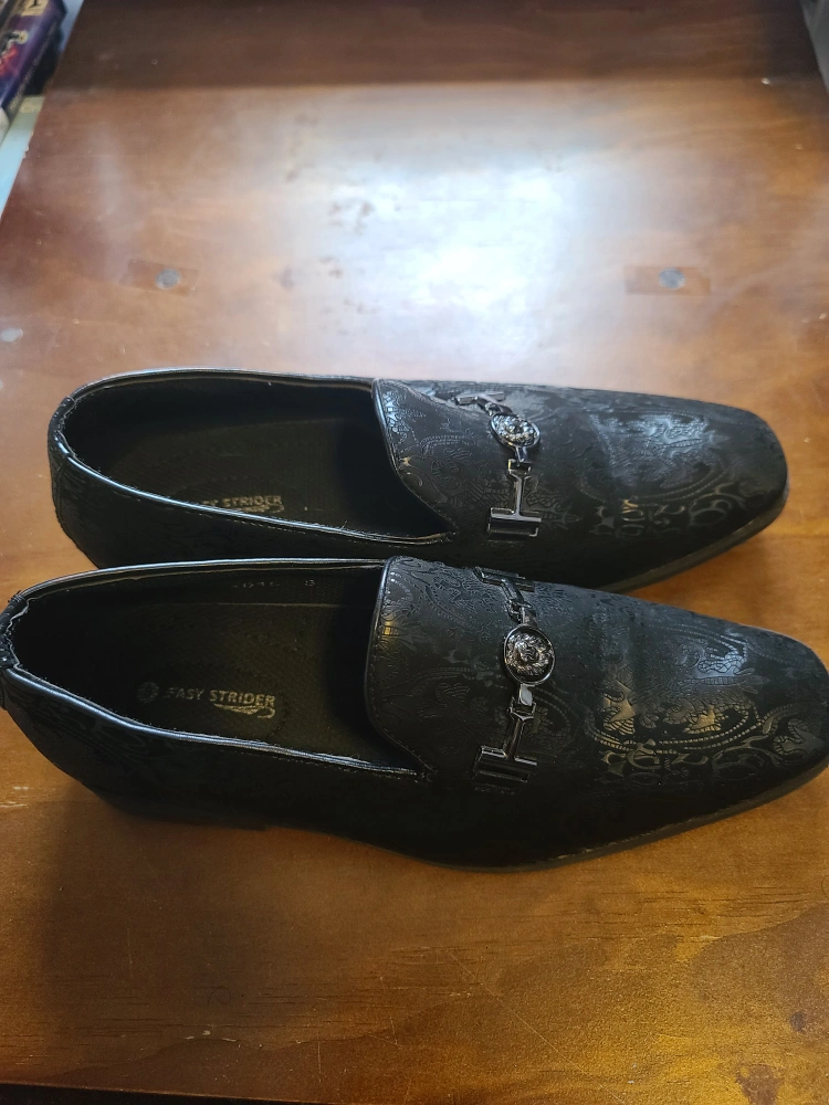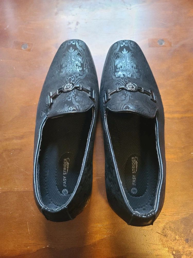 Selling a pair of Size 8 Black Easy Strider Loafers! They have a unique patterned design and are in great condition for special occasion. Note: Worn only 1 time for an event, slightly visible crease on shoe. Will not fit if you need a wide shoe.