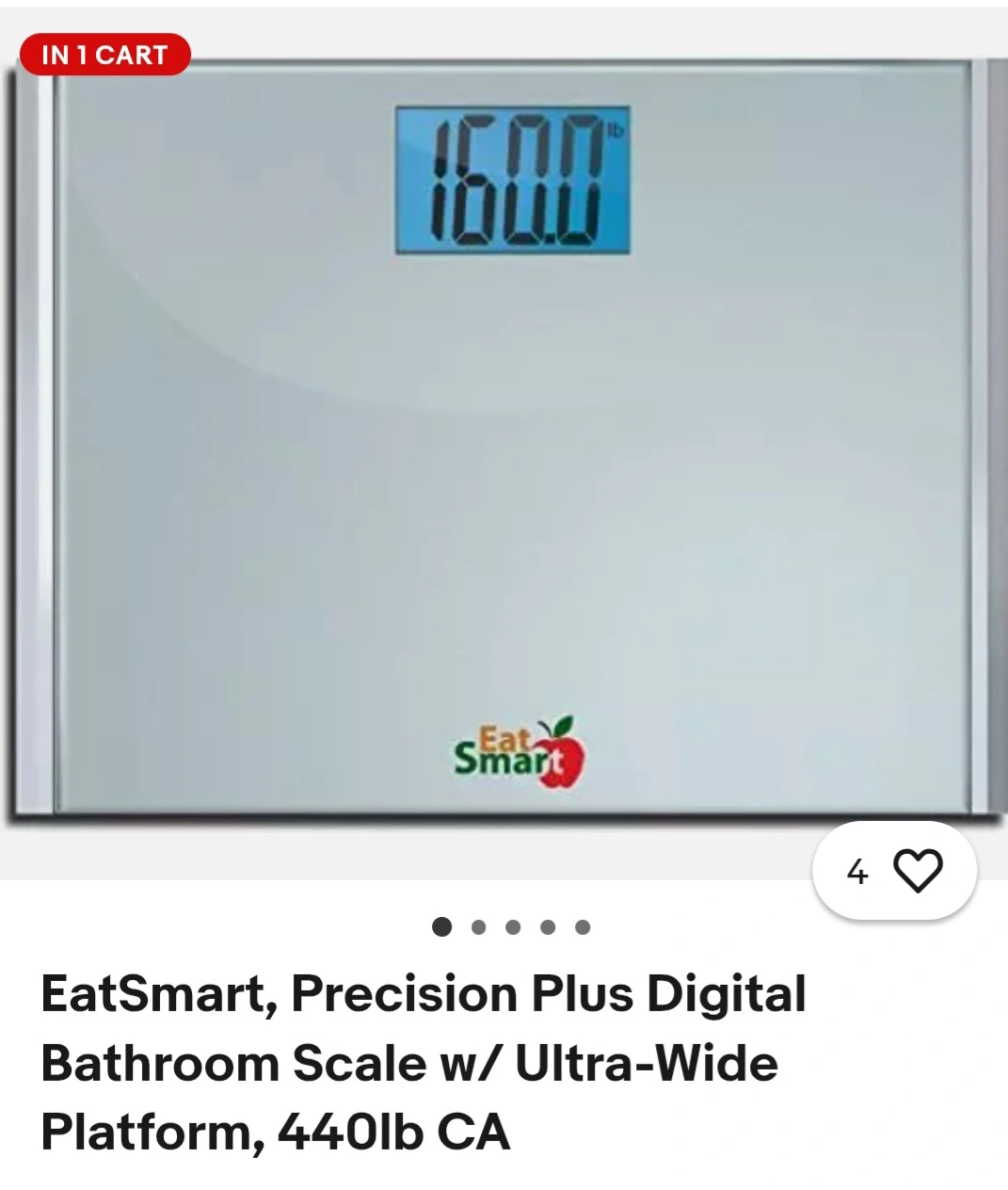 12Selling an EatSmart Precision Plus digital bathroom scale. It has an ultra-wide platform and can measure up to 440 lbs. The scale features a large backlit LCD display with a 10-second reading freeze