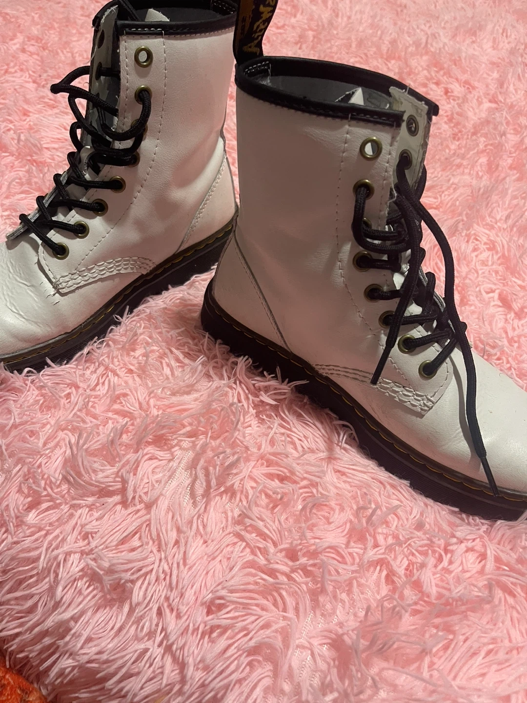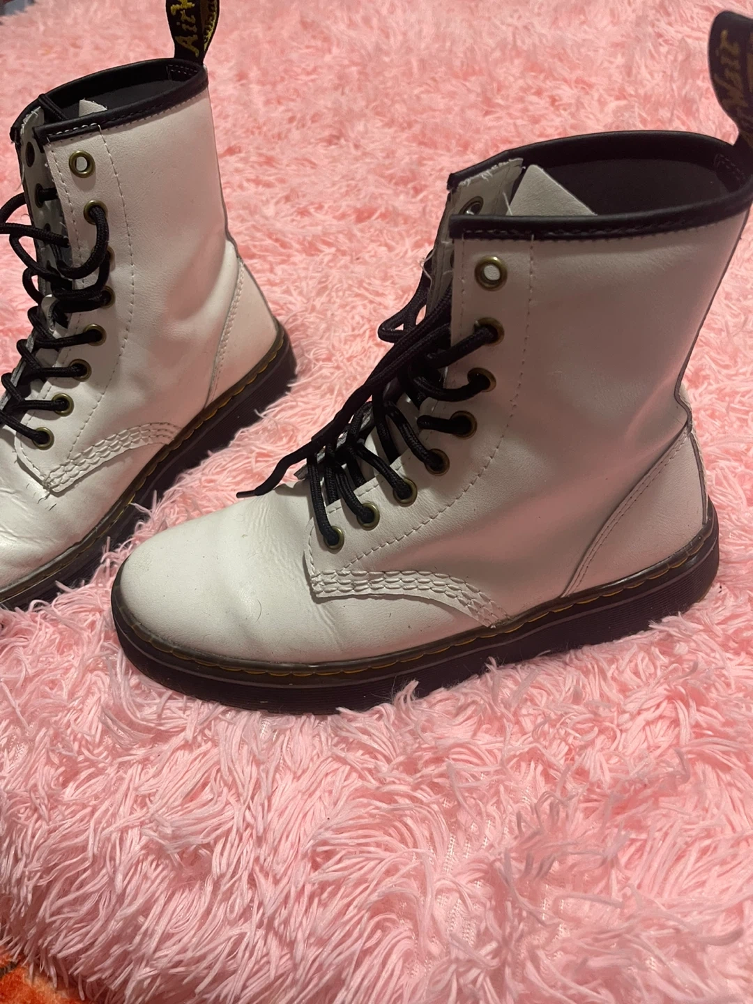 Selling a pair of Dr. Martens Zavala boots in white! They are a US women's size 7. These boots have a classic look and are ready for a new home