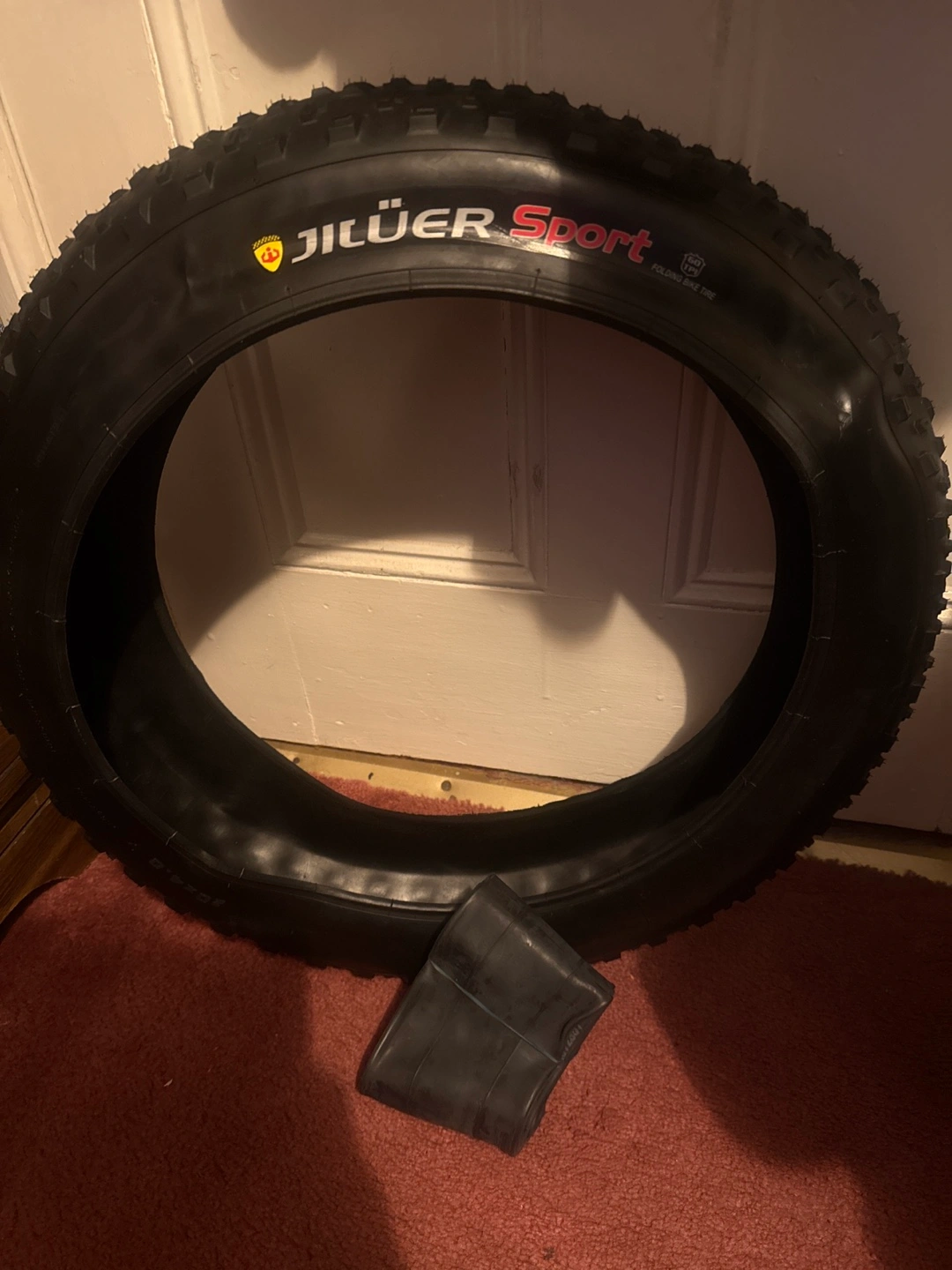 65New bike tire. Never used. Includes inner tube. 26x4.0 size. inner and outer tire together.