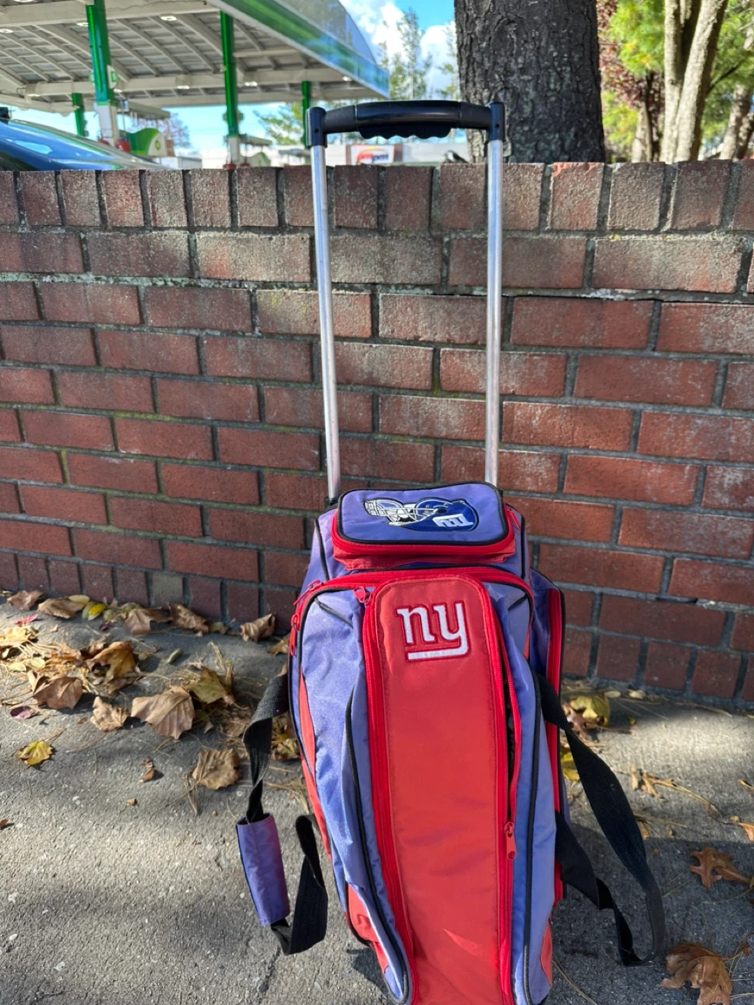 23Selling an Ebonite Maxim Marilyn bowling ball. Also included is a New York Giants bowling ball bag with a retractable handle. Perfect for any Giants fan who loves to bowl!