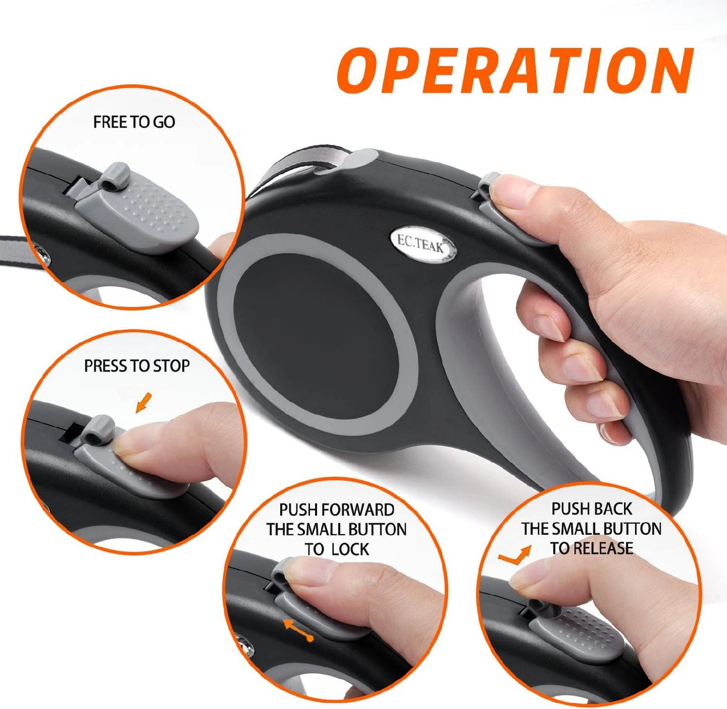 EC.TEAK Retractable Dog Leash, 26 Foot Dog Walking Leash for Medium Large Dogs up to 110lbs, One Button Break & Lock, Heavy Duty No Tangle, Large