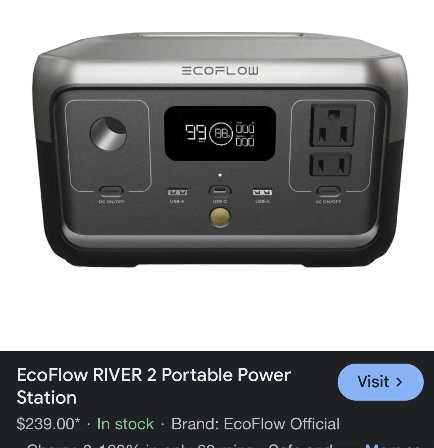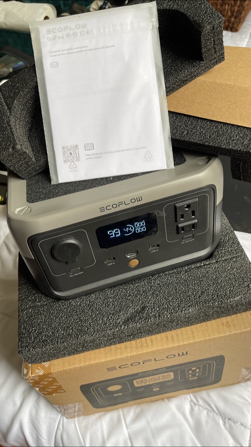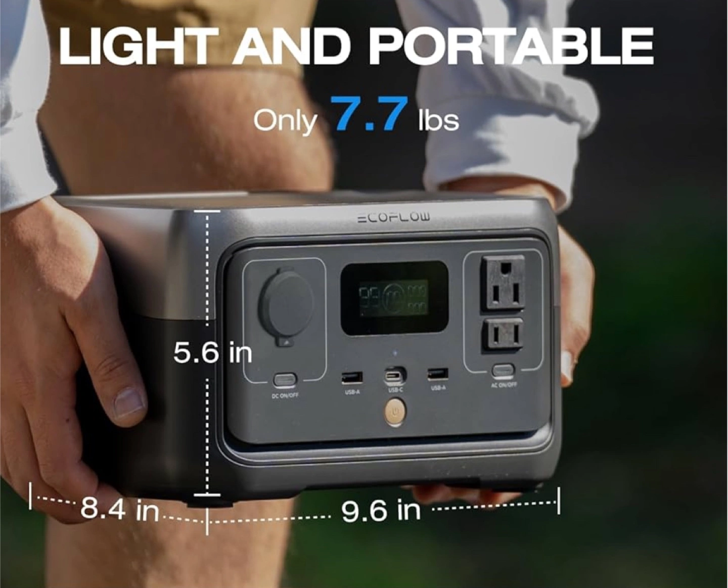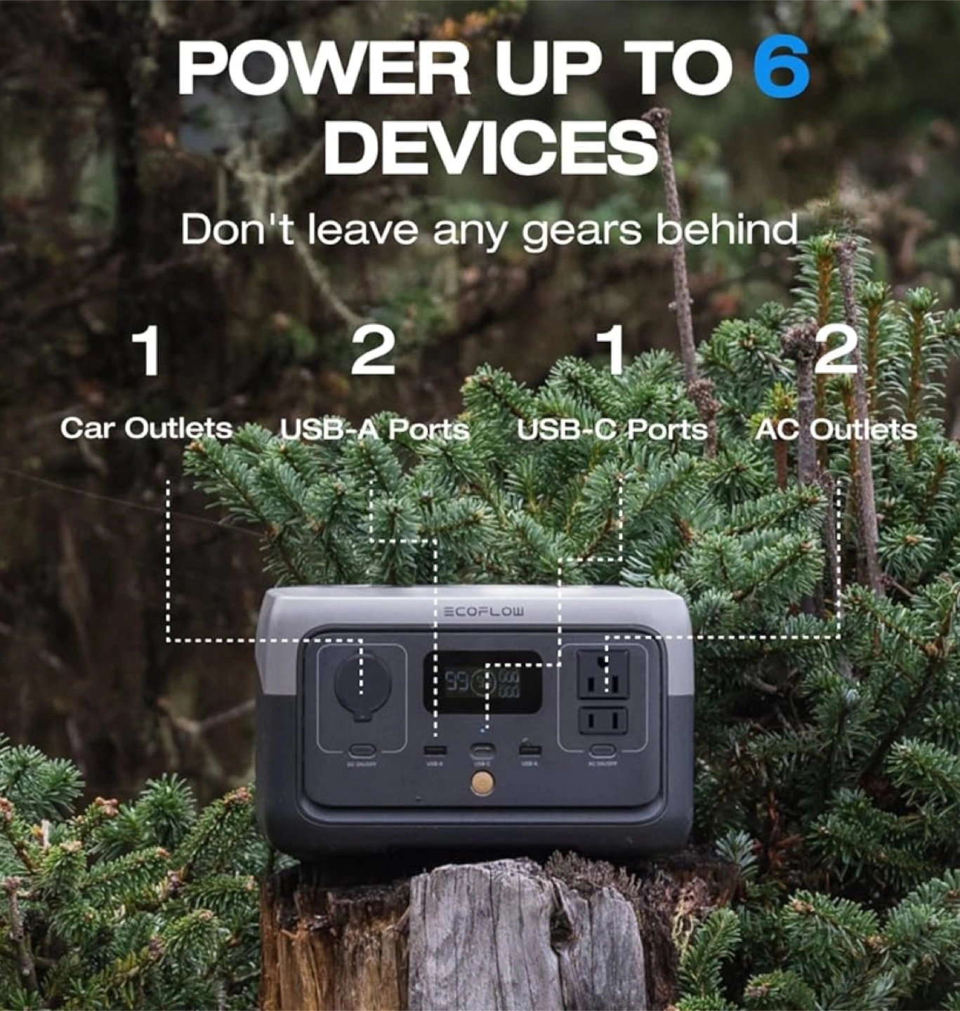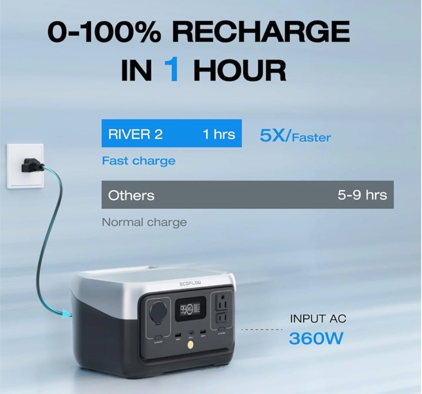 1 Hour AC Recharge] - Fully recharge the electric generator using an AC outlet in only 1 hour with EcoFlow's X-Stream fast charging technology. [Power All Your Essentials] - With an output of up to 600W, run 6 essential appliances simultaneously without worrying about overloading. With a whole host of ports, from 300W AC outlets to USB-C, we've got all your device's plugs covered. [LFP Long-Life Battery] - Using LFP battery cells, use and recharge RIVER 2 more than 3000 times before hitting 80%. That's almost 10 years of regular use. RIVER 2 includes advanced BMS protection, monitoring voltage, current, and temperature to keep your LFP battery running for years. [Fast Solar Charging] - Use clean, green renewable energy to recharge RIVER 2 power generator in as fast as 2.3 hours with 110W solar input. [Light & Portable] - With a lightweight of only 7.7 lbs, RIVER 2 is the ideal outdoor generator for all your off-grid adventures. With a built-in handle, this portable battery is easy and convenient to take anywhere you need power. [What's included] - RIVER 2 portable power station, AC charging cable, car charging cable, user manual, and a 5-year service.