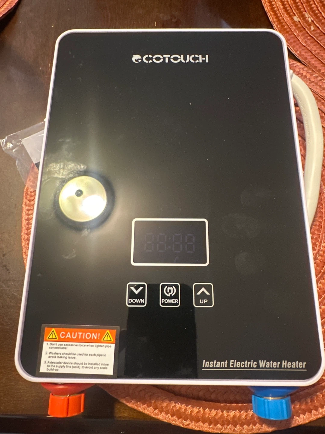 Selling an ECOTOUCH instant electric water heater. It's in great condition and ready to use! Please note the caution label regarding installation and usage