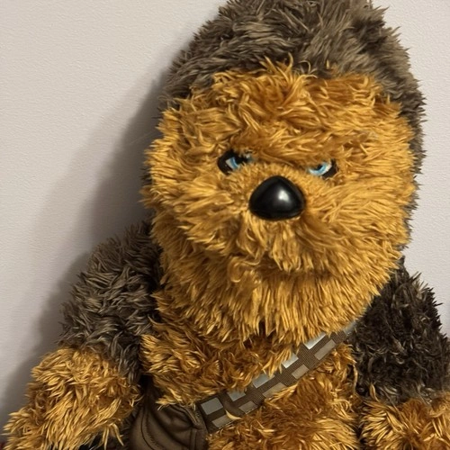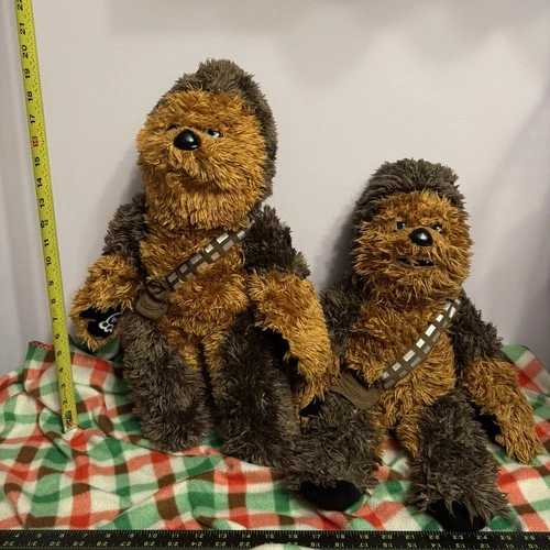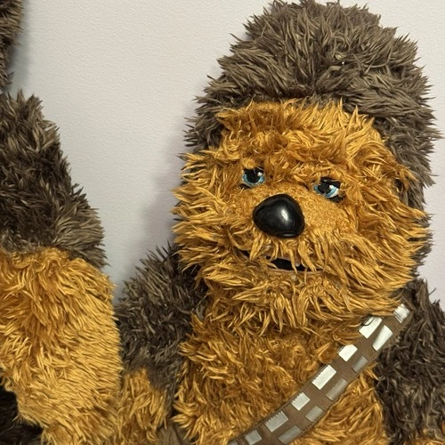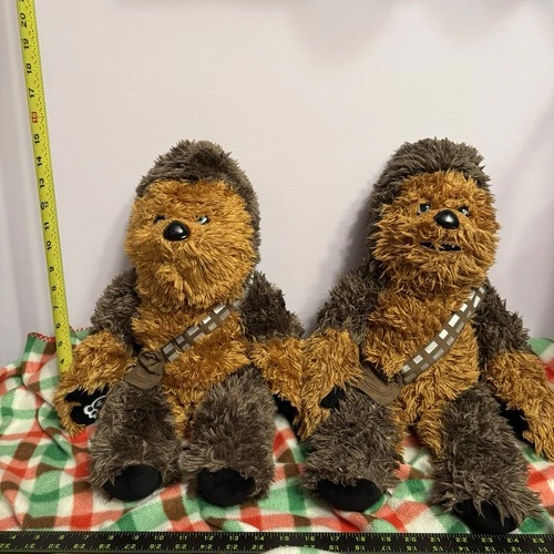 This listing includes two official Star Wars Chewbacca plush toys — both large, soft, and full of Wookiee charm! These collectible plush figures feature Chewbacca’s signature fur, blue eyes, and bandolier strap. Perfect for fans of the Star Wars saga or anyone who loves cuddly collectibles. Character: Chewbacca (Star Wars). Franchise: Disney / Lucasfilm Ltd. Size: Approximately 18 inches tall. Color: Brown and dark tan fur with signature bandolier strap. Condition: used. Materials: Polyester plush, embroidered features, plastic nose. Sold as a set of 2. Ideal for collectors, themed décor, or as a gift for any Star Wars fan.