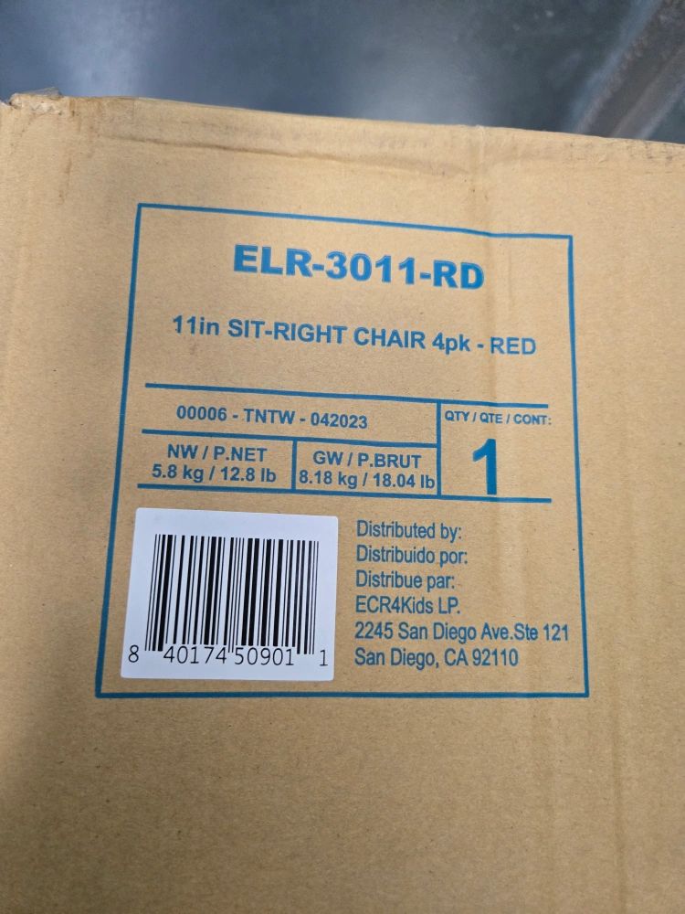 NEW IN BOX - 2 SETS AVAILABLE ECR4Kid SitRight Chair Classroom Seating ECR4Kids SitRight Chair, Classroom Seating, 4-Pack Condition: New Color: Red Size: 4-Pack Encourage dynamic learning with flexible seating allowing students to work in pairs, small groups, or independently; inspire focused learning in a playroom or library Child-Sized: Furniture fit for kids provides a comfortable and safe learning environment to help little ones develop physical, cognitive, and social skills while promoting independence and creativity Maintenance Free: Chairs have no exposed hardware to maintain and arrive fully assembled allowing more time to spend with little ones; stack vertically for space-saving storage Certified Safe: Chairs are GREENGUARD [GOLD] Certified for low VOCs, CPSIA compliant, and BIFMA X6.1 compliant for safety, durability, and structural adequacy of Educational Seating Product Dimensions: Each chair measures 15” W x 18” D x 21” H, 11” seat height