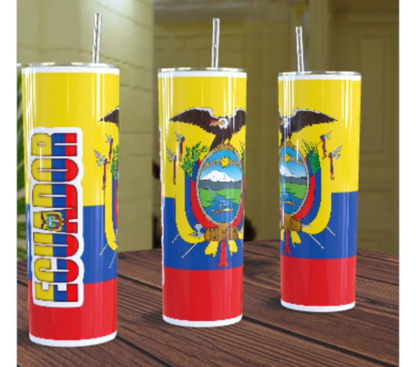 I'm selling a tumbler with the Ecuador flag on it! It's in great condition and ready for a new home