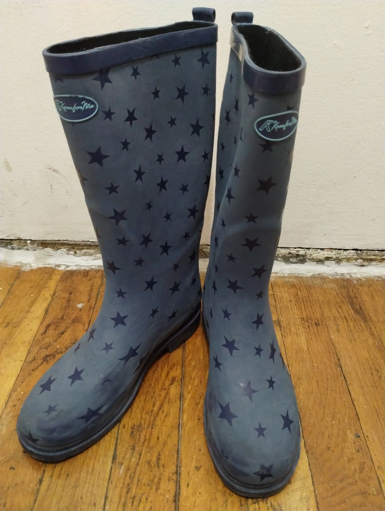 These are thick, blue and starry snow/rain boots. They are a women's size 6 but they fit 6.5 as well. They are somewhat narrow and not for wide feet. They are like new and selling for a fraction of the original price.