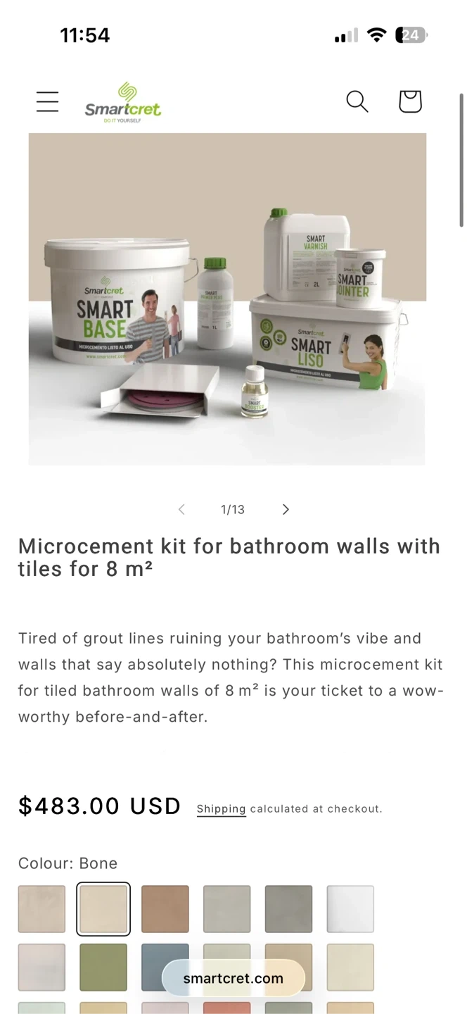 See details at https://www.smartcret.com/en/products/microcement-kit-for-bathroom-walls-with-joints-for-8m2?variant=55476574224719