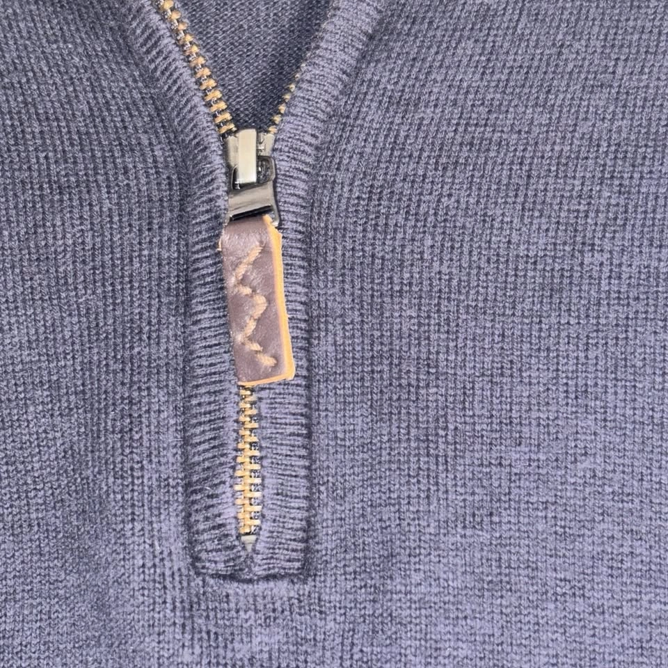 65Eddie Bauer Sweater Mens Medium Navy Blue Half Zip Cotton Cashmere Pullover Soft Condition: Good used condition with light normal wear, no holes or stains noted Shell: 95% cotton, 5% cashmere for a soft, comfortable feel Navy blue color with ribbed collar, cuffs, and hem Half zip pullover design with branded leather zipper pull Iconic Eddie Bauer logo tag on lower hem and collar label Tag size: Large (Mens) Made in China Reference number: 13303128 (Fall 2013 release) Classic style perfect for casual, business casual, and layering Gentle wash care instructions; do not dry clean