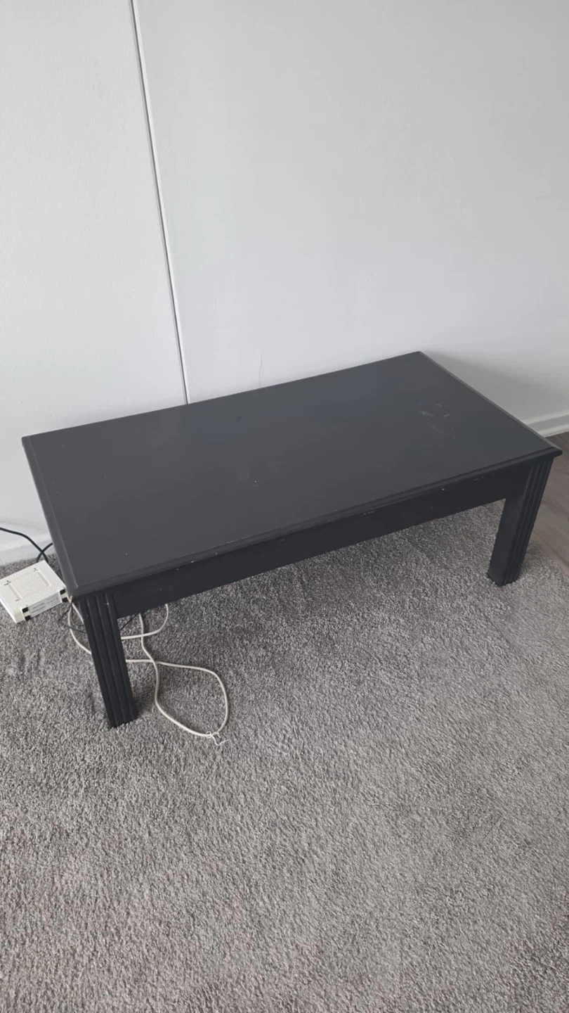 Black rectangular coffee table. Its dimensions are approximately 40 inches long and 20 inches wide. It's made of a solid material, likely wood. This table's classic design makes it a versatile addition to your living space.