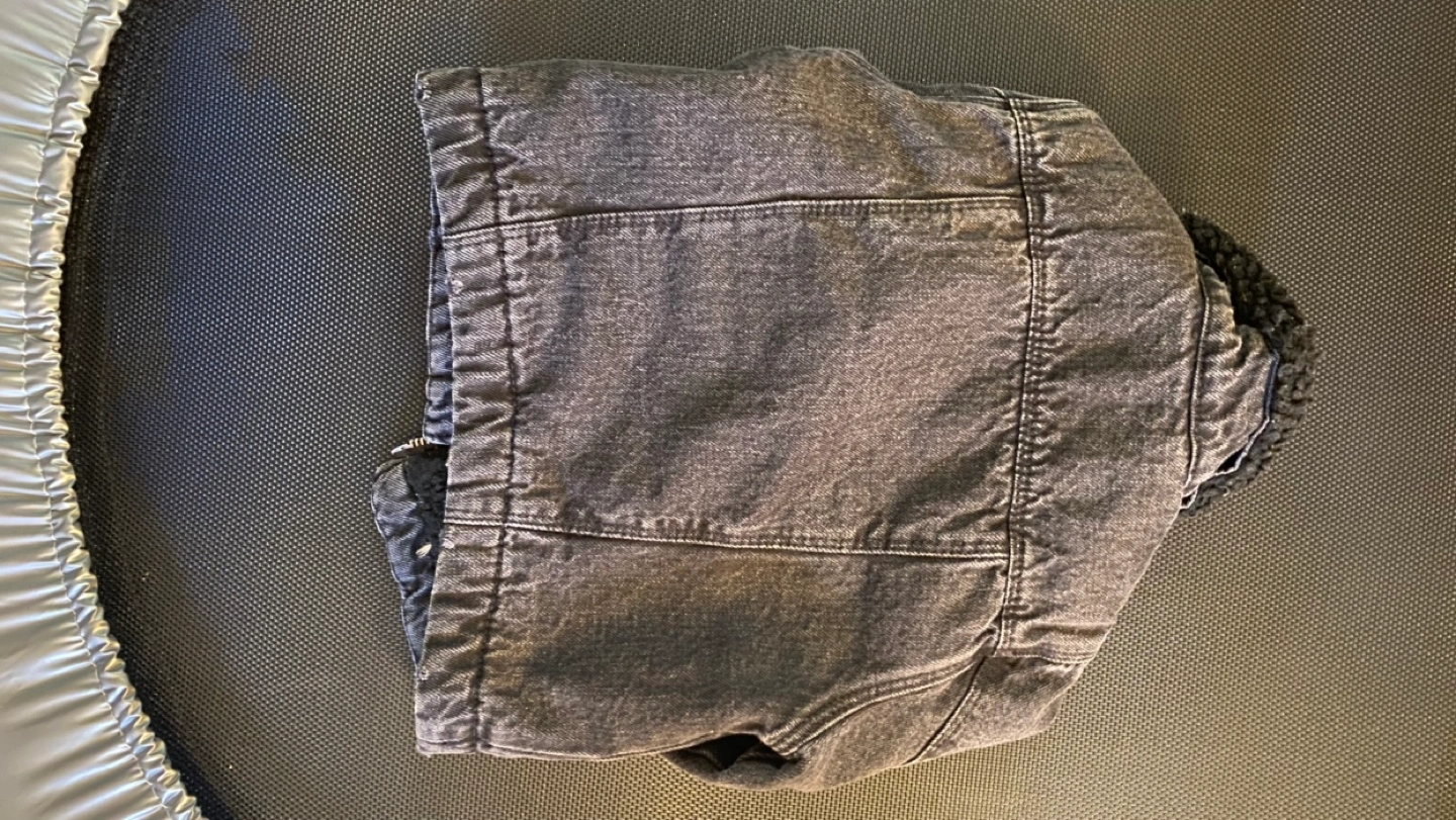Adorable black denim jacket. Features a sherpa collar. Size 12-18 months. Zipper closure. Excellent for fall and winter.