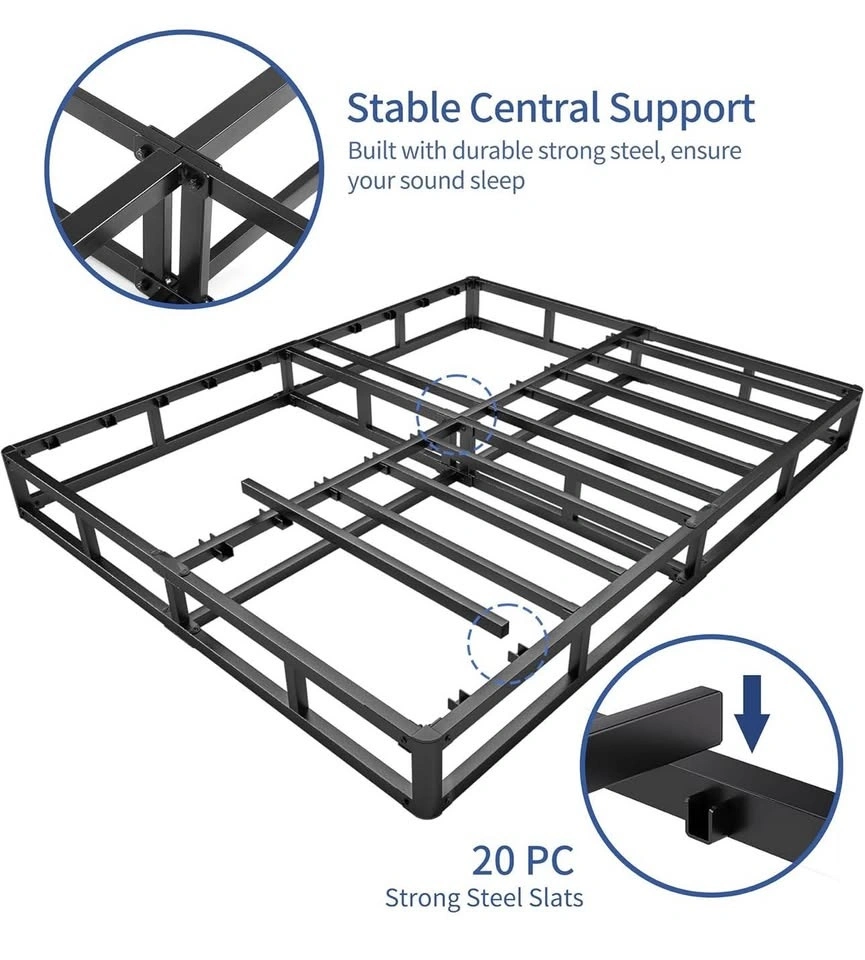7-inca box spring, low-profile metal mattress base 80”x76”x7”