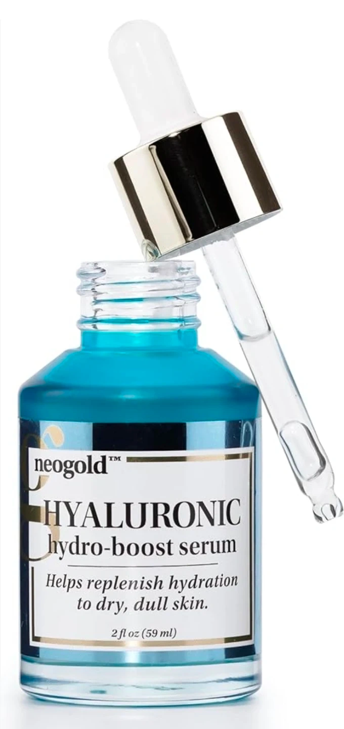 Neogold Hyaluronic Hydro-Boost Serum replenishes hydration for dry, dull skin. It's a 2 fl oz (59 ml) bottle. This serum is designed to help boost skin's moisture. Use it daily for a more hydrated complexion!