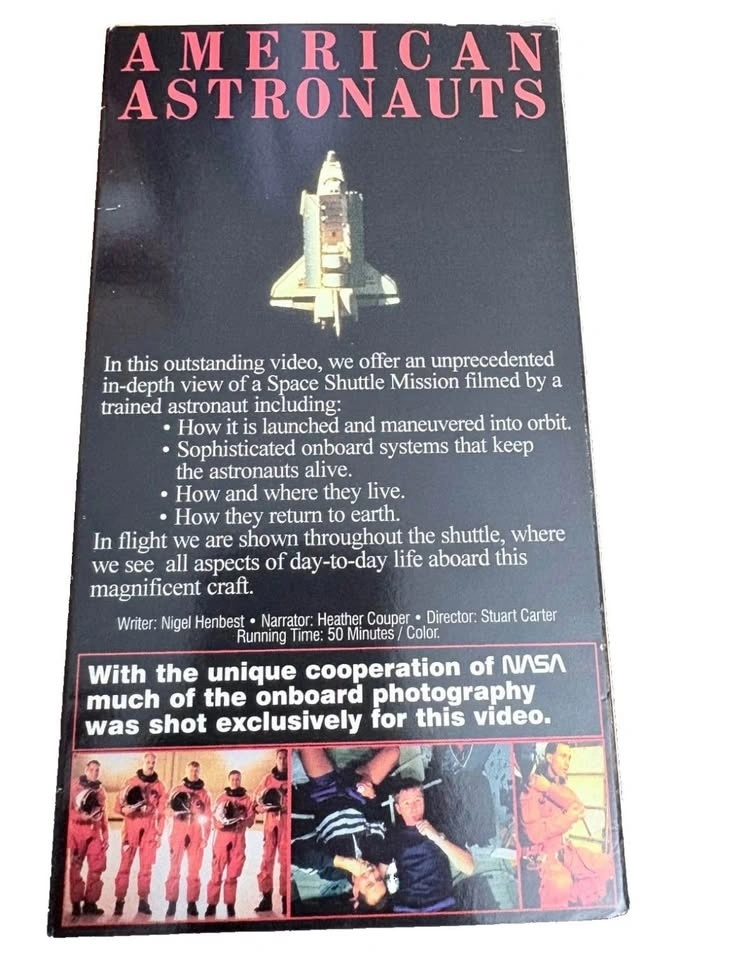 This VHS tape features the American Astronauts Space Shuttle Discovery mission, showcasing the historic event live from NASA. It captures the excitement and milestones of the space shuttle launch, providing a unique glimpse into space exploration and American scientific achievement. Made in the United States, this VHS tape offers a nostalgic viewing experience for those interested in space history and the contributions of American astronauts.