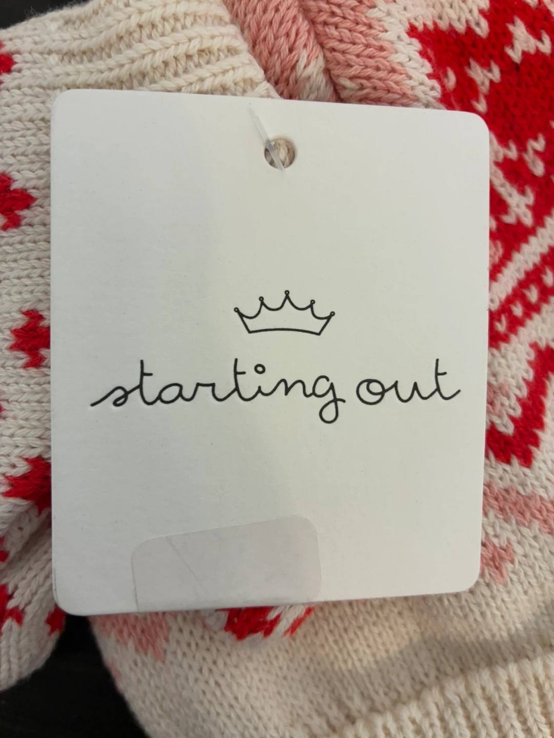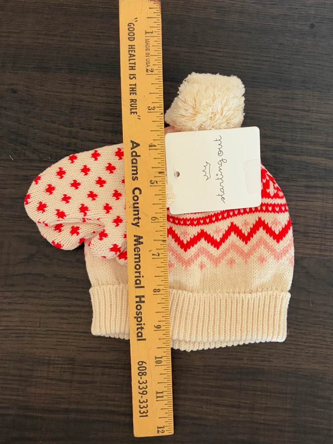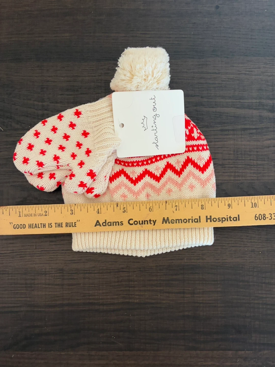 This adorable hat and mitten set from Starting Out is perfect for keeping your little one warm! The set features a cute red and white pattern. It's brand new with tags!