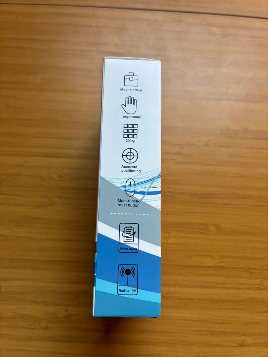 This wireless mouse connects via 2.4g with a transmission distance up to 8-10 meters. It features red light optical technology, ergonomic shape, and adjustable DPI (800-1600). Includes a NANO receiver and has automatic sleep technology for up to 6 months of battery life.