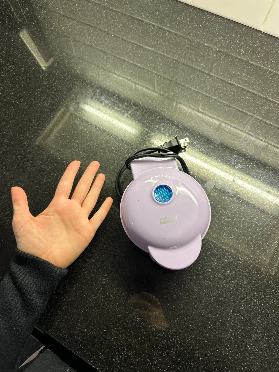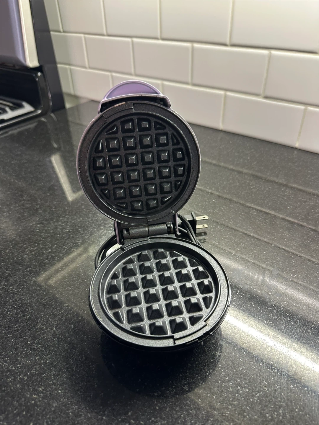 a Dash mini waffle maker in purple. It's perfect for making single-serve waffles, and its compact size makes it easy to store. This waffle maker is lightweight and portable, so you can take it with you on the go