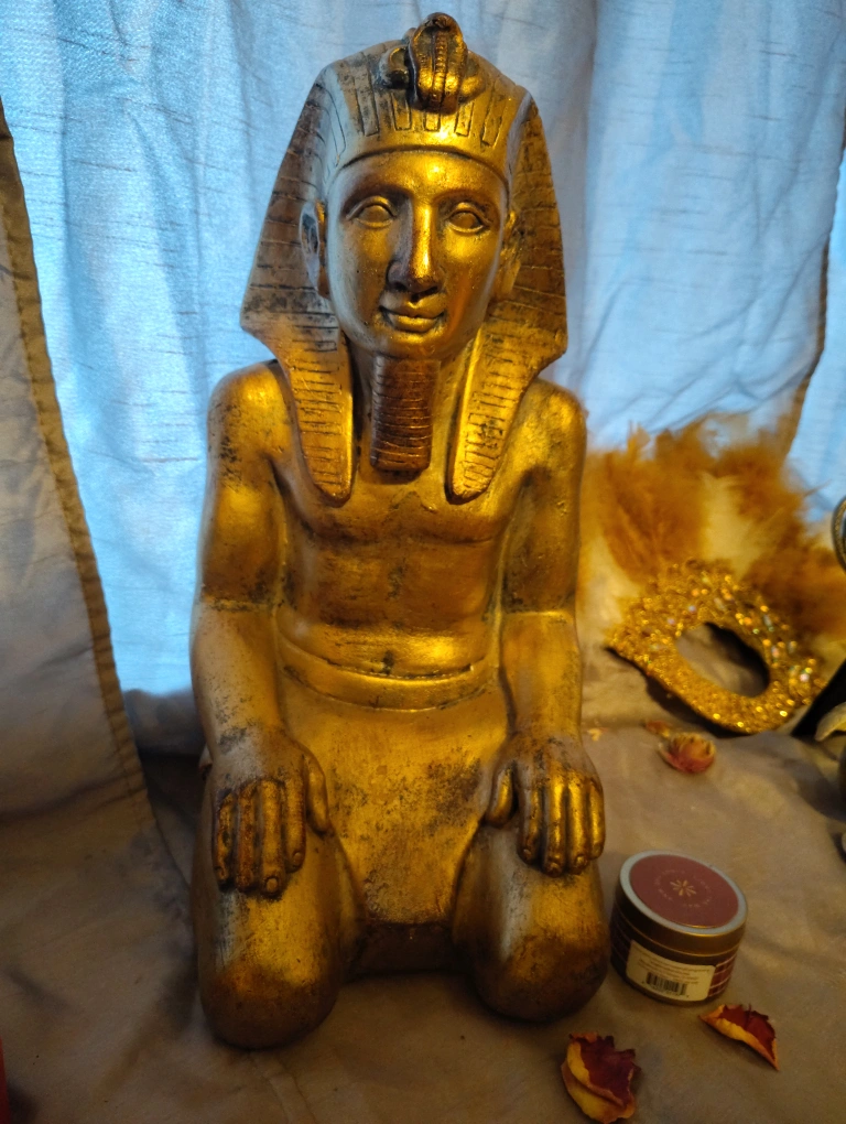 Selling a decorative gold-colored Egyptian Pharaoh statue. It's a unique piece to add some character to your home! . Originally bought for $79 at A&E Furniture but I'm asking for $50 dlrs is in good conditions/New
