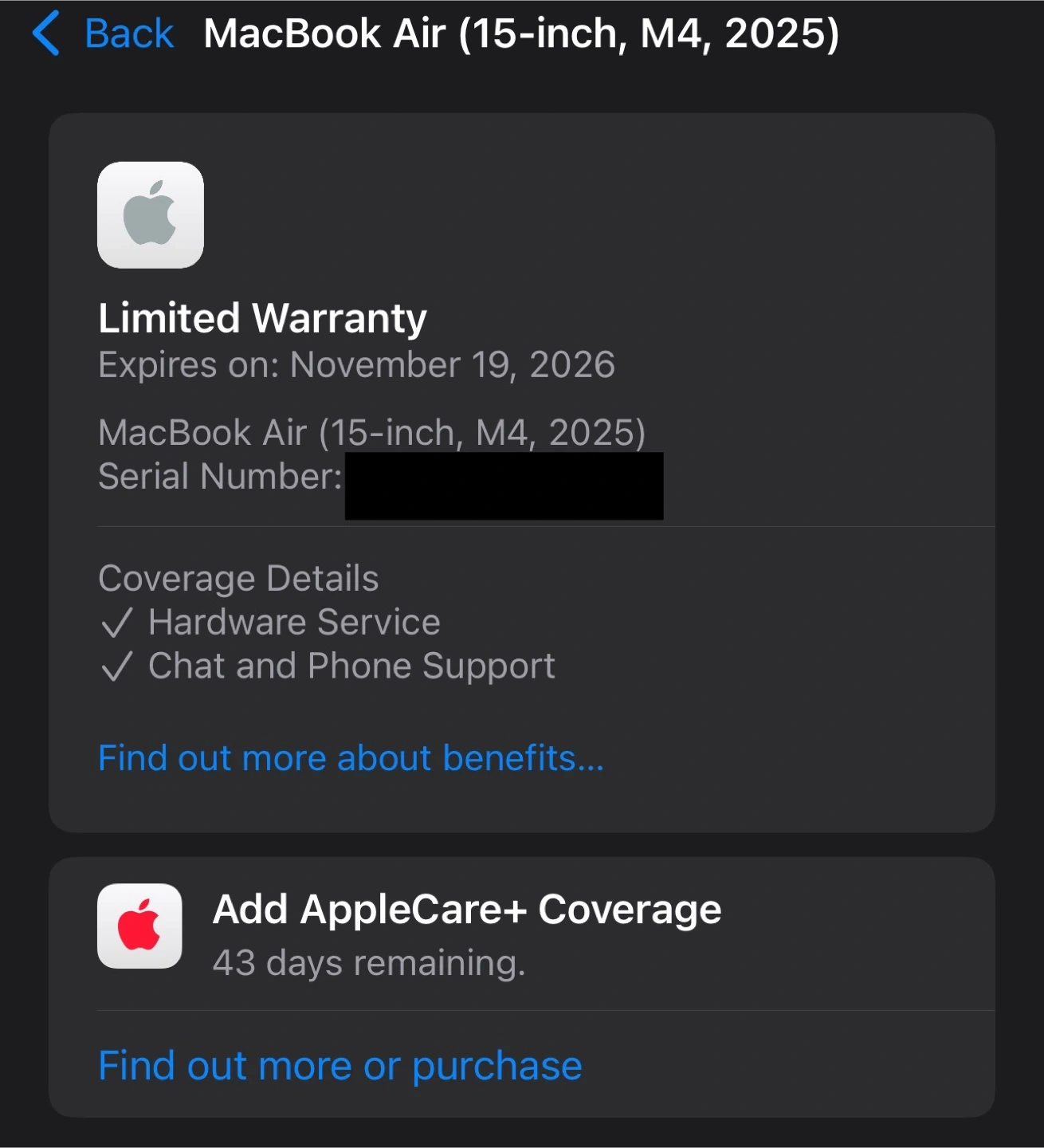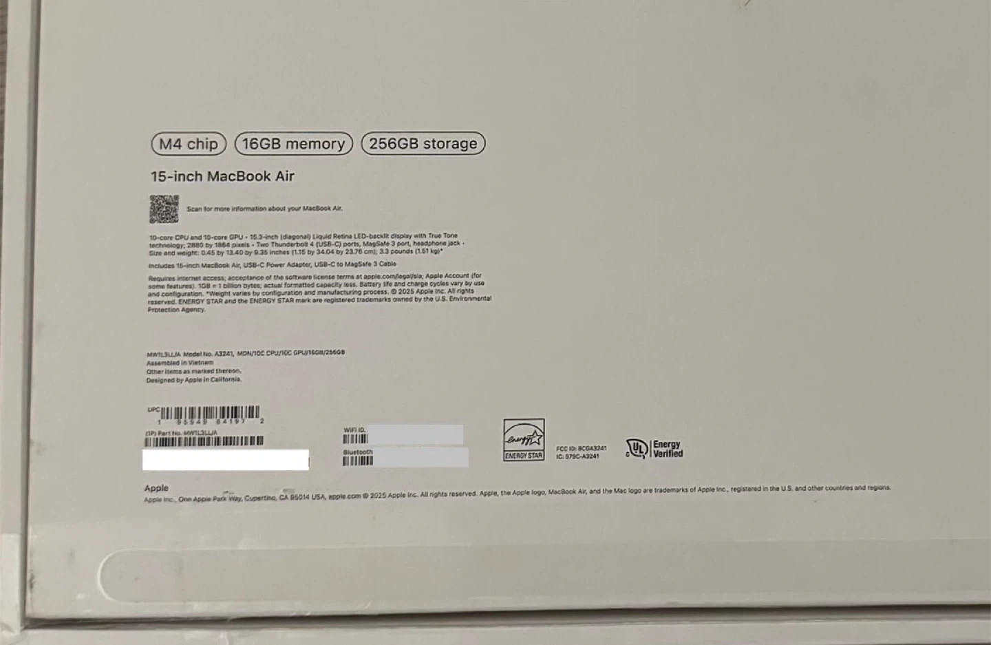 Apple MacBook Air 15” M4 2025 (Purchased Nov)