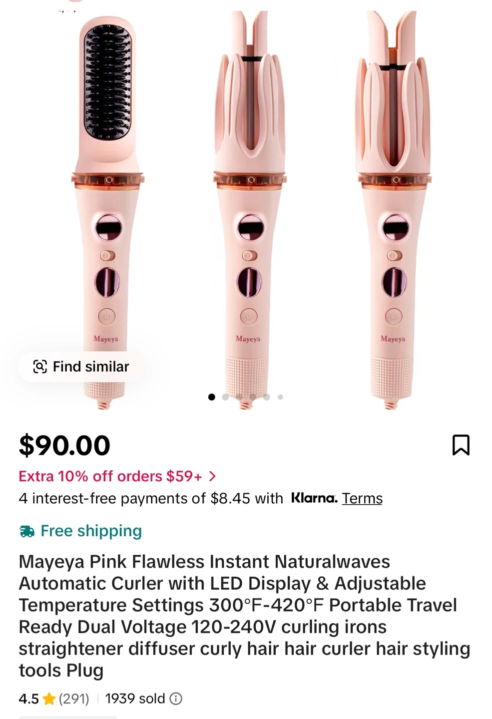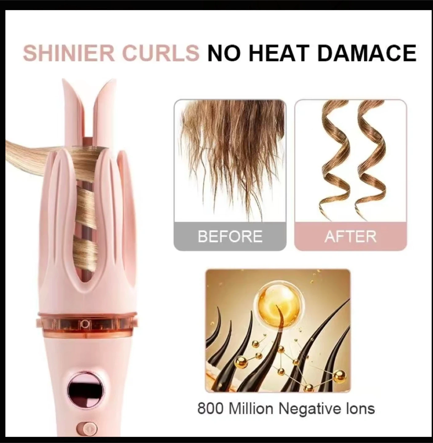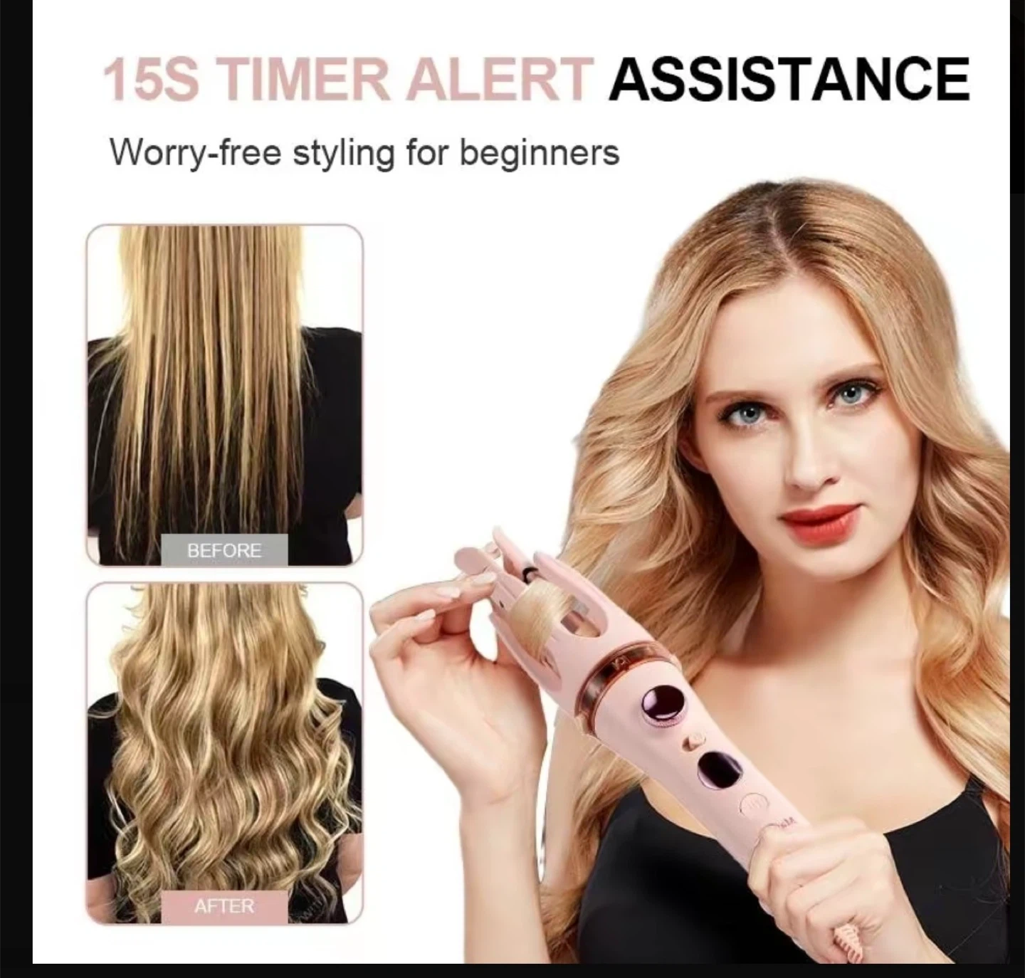 This Mayeya automatic curler creates natural waves with an LED display. It features adjustable temperature settings from 300°F to 420°F. Its tangle-free smart system and smart timer help prevent hair damage and scalding. This portable device works with dual voltage for travel convenience.