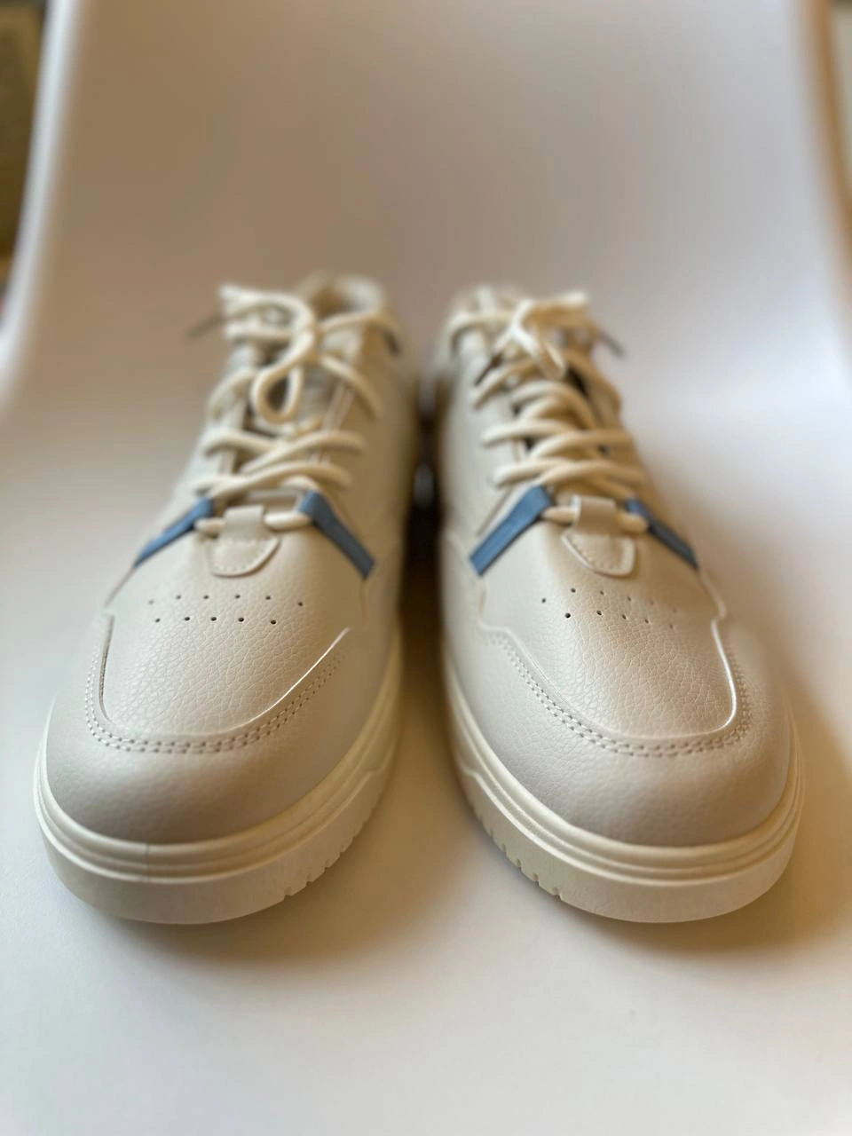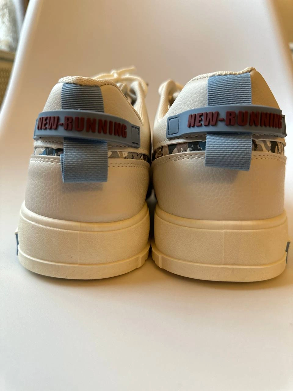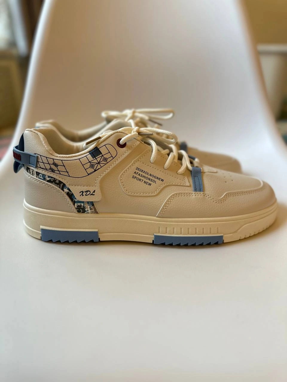 These are a pair of stylish XDL running shoes in a cream color with blue accents. They feature a unique design and are perfect for casual wear or light exercise.