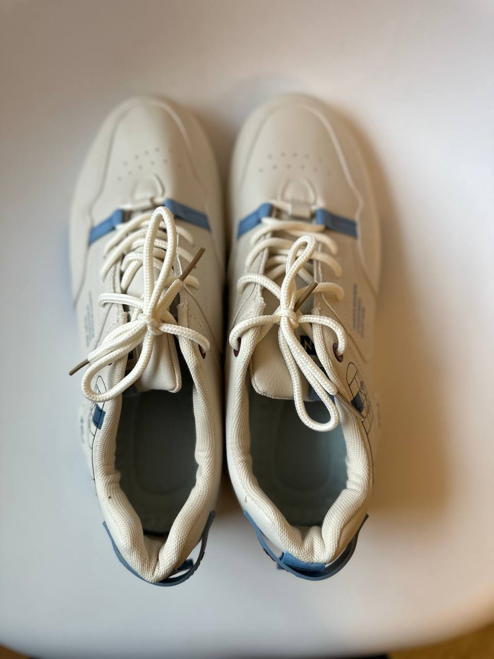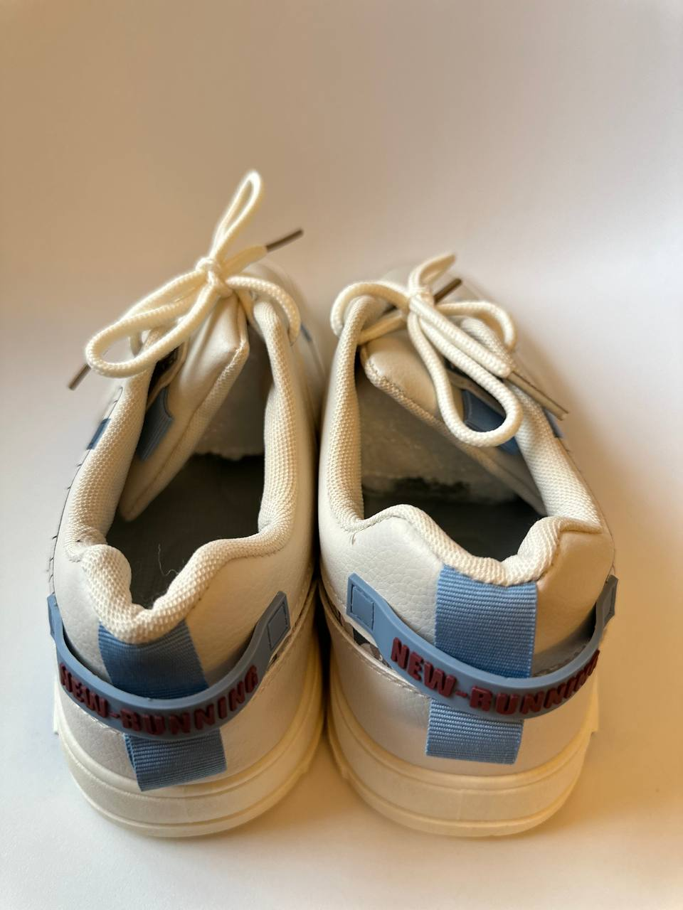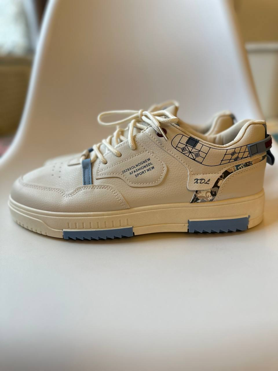 These are a pair of stylish XDL running shoes in a cream color with blue accents. They feature a unique design and are perfect for casual wear or light exercise.