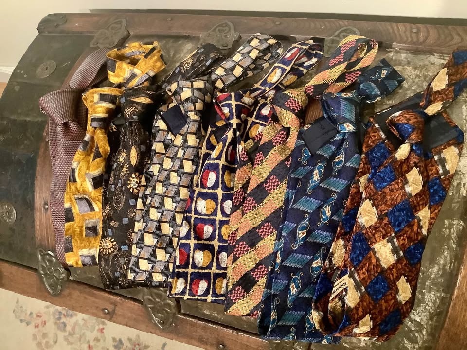 Eight Colorful neckties with various unique patterns from Italian designer Ermenegildo Zegna. All are in Great condition, no tears or stains. Different designs to choose from. These were sent to me by my father who has worn them in years.