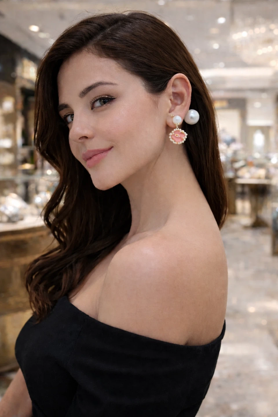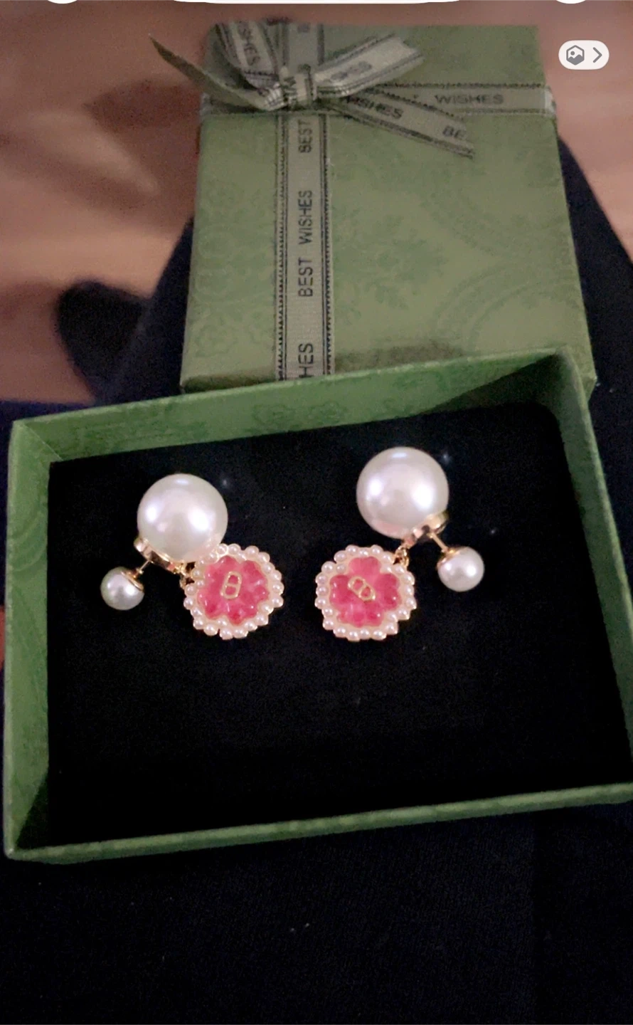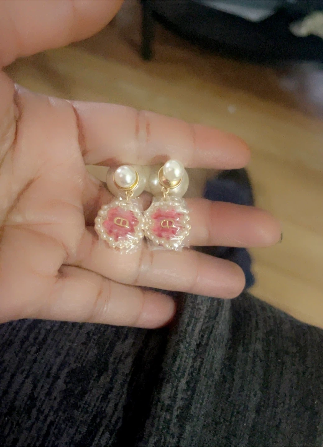 Chic Dior Beautiful pearl earrings with delicate pink floral details and gold-tone accents. Elegant, feminine, and perfect for Valentine’s Day. Comes in a gift box, ready to give. A lovely surprise for someone special 💖 ✨ Fast shipping • Limited stock • Great gift id www.rosecolletions.shop