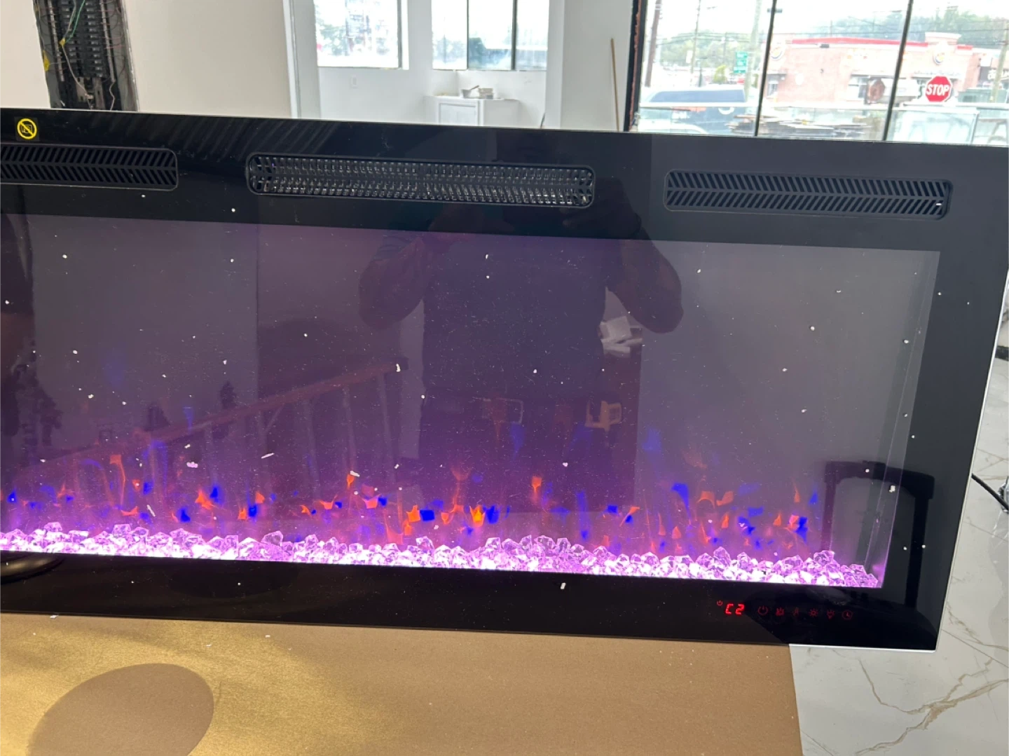 Selling a 46-inch electric fireplace in black! It gives a cozy vibe and is easy to install. Perfect for adding some warmth and style to any room