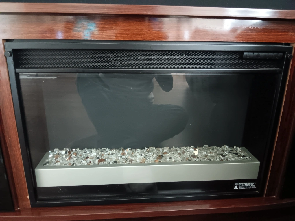 Here's an electric fireplace insert. It features decorative glass rocks and a sleek design. Perfect for adding a cozy touch to your living space