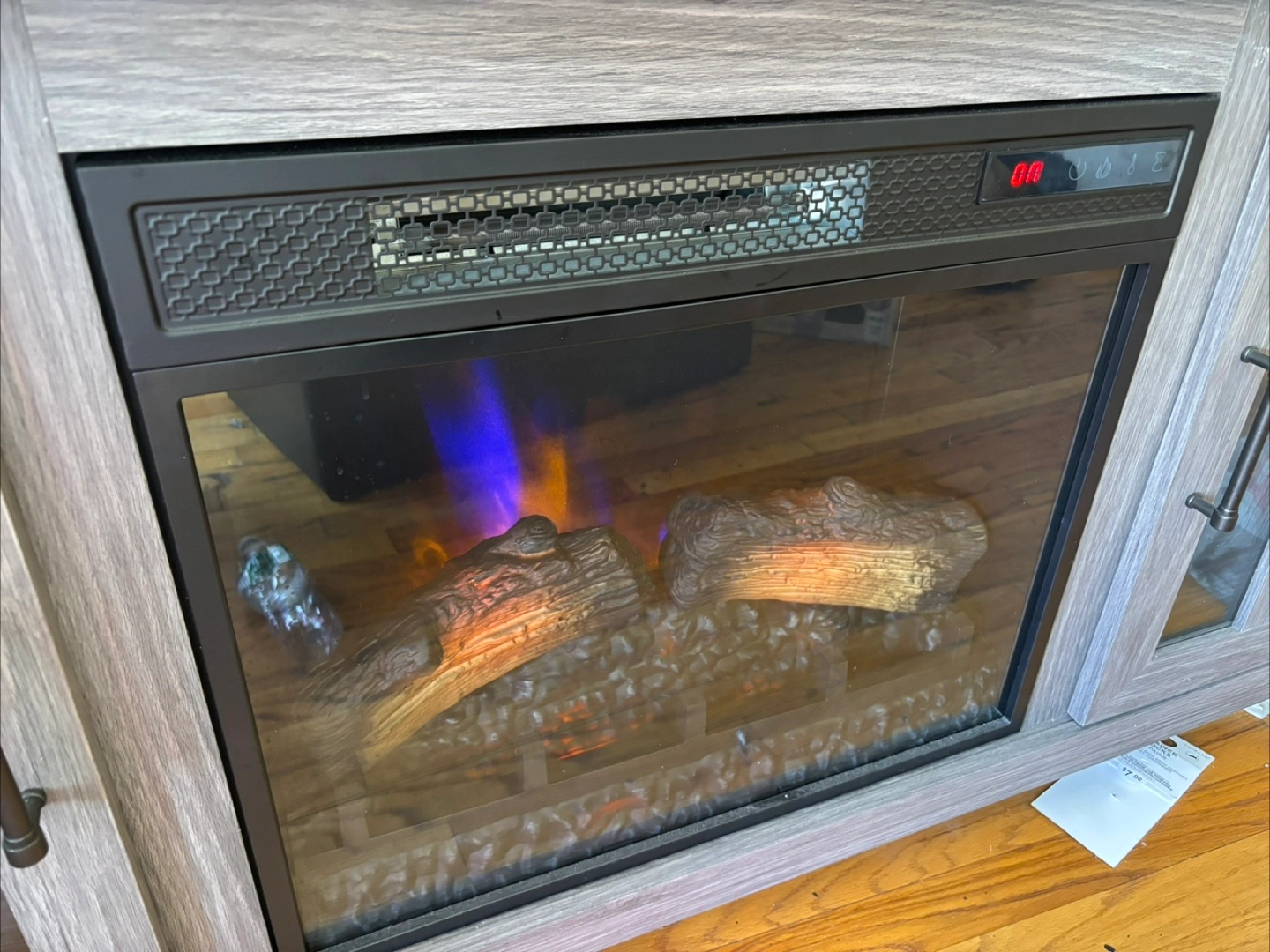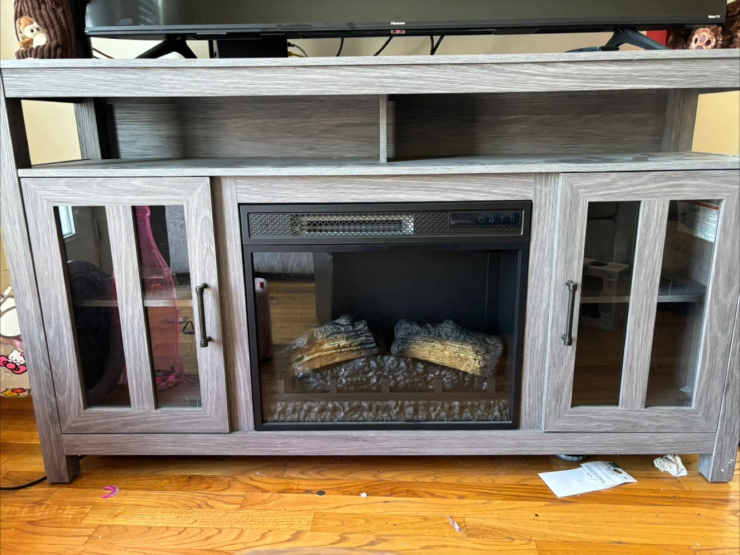 Selling a fireplace TV stand in great condition! This unit adds warmth and ambiance to any room. It features a built-in electric fireplace with realistic flame effects and a spacious top for your TV and media components. Perfect for cozy nights in. real pictures attaches. minor scratches and damages.