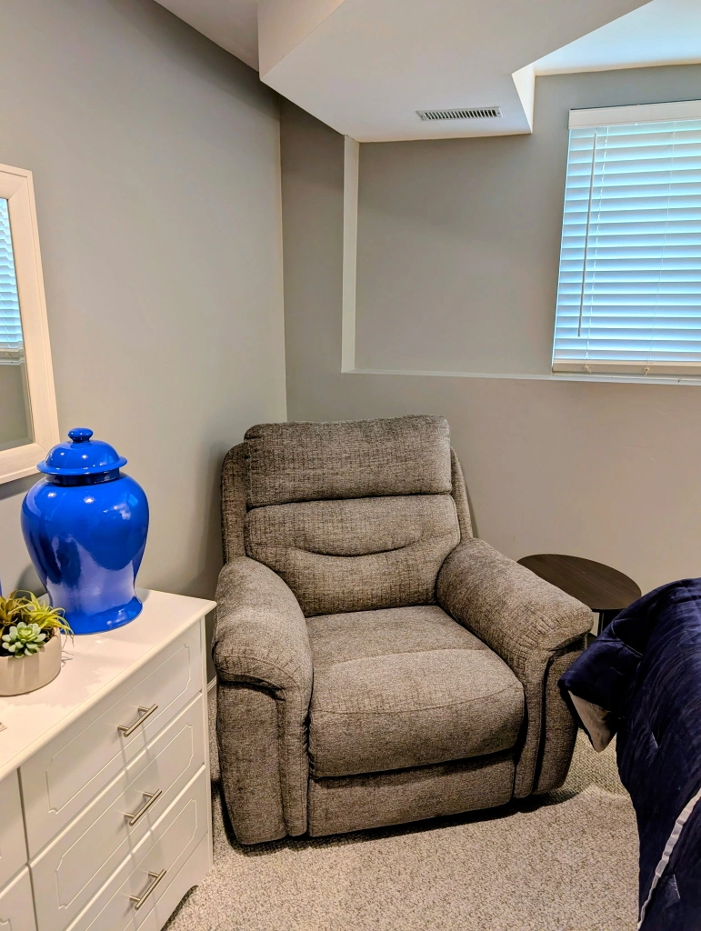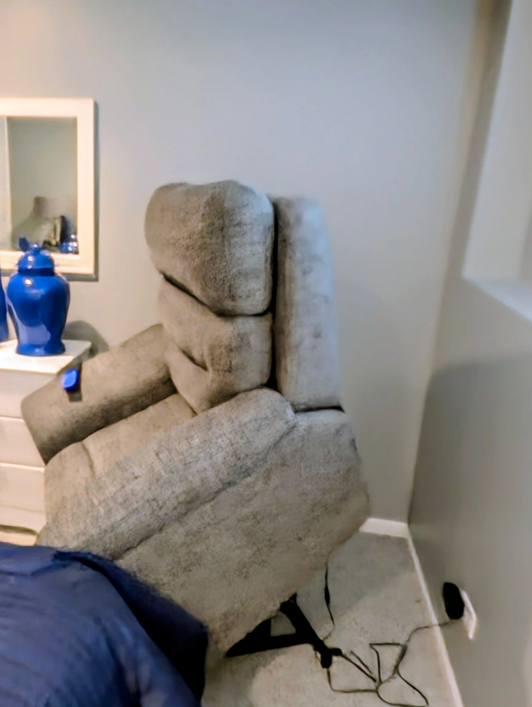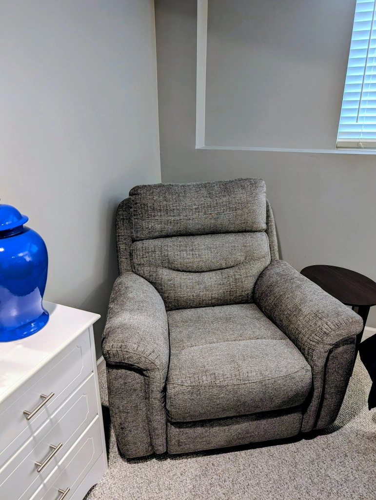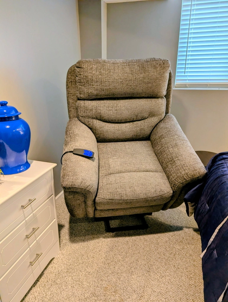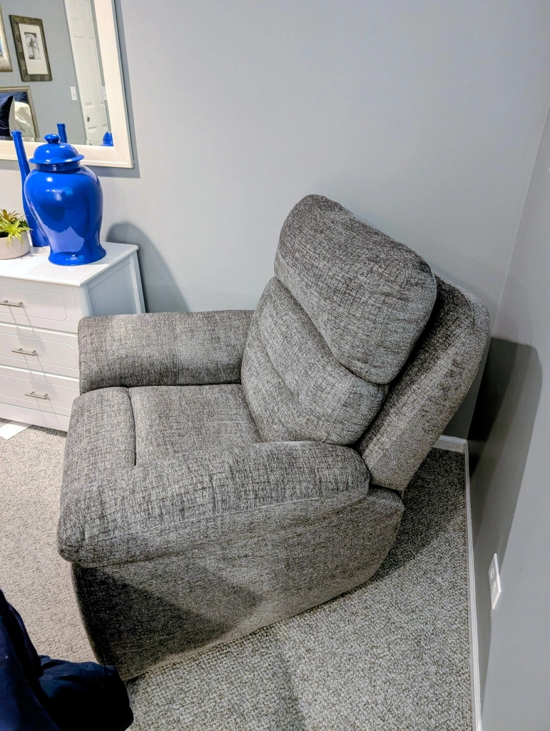 90Fully electric, lumbar and head adjustable. And will fully lift you up and out of recliner. Some of the pictures make the chair look brown but it is gray. Barely used, asking $350. Will consider reasonable counter offer. Pickup in Elgin. No delivery. Cash only please