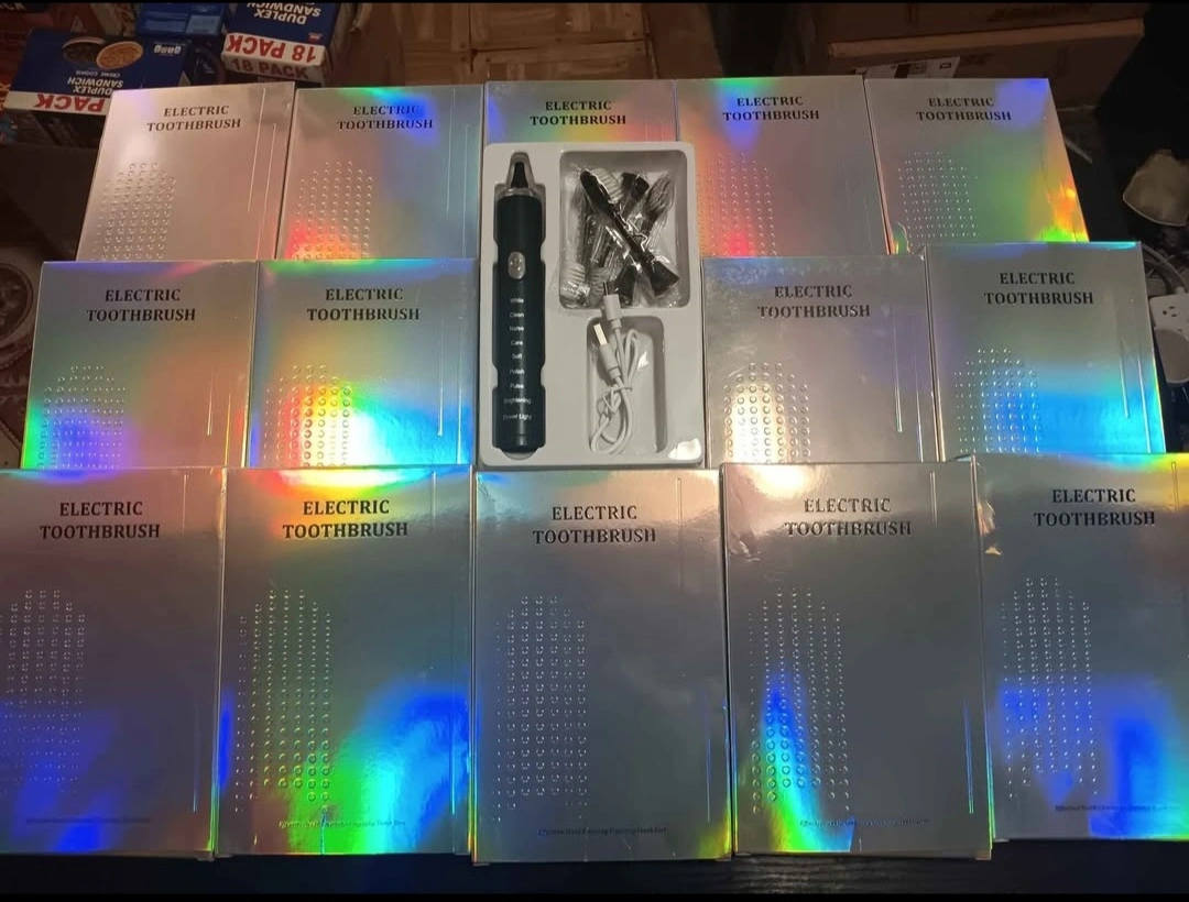 electric style rechargeable portable level mode toothbrushes. for effective teeth cleaning. Silver holographic packaging.with replaceable brush heads