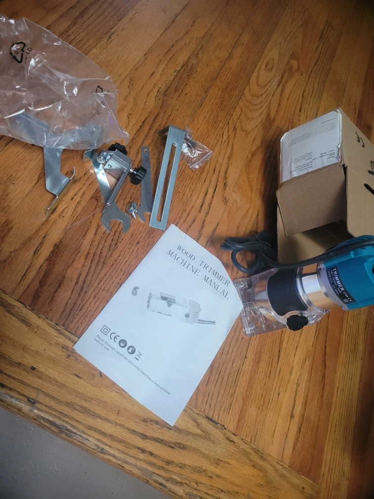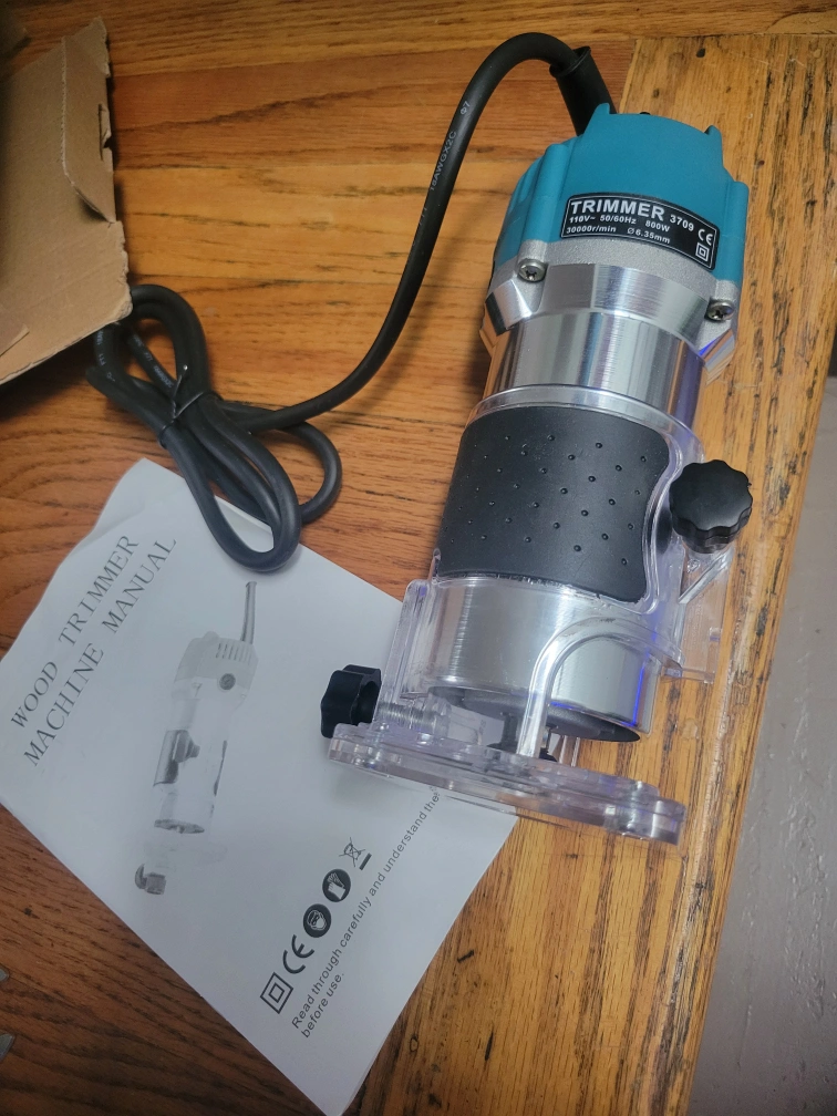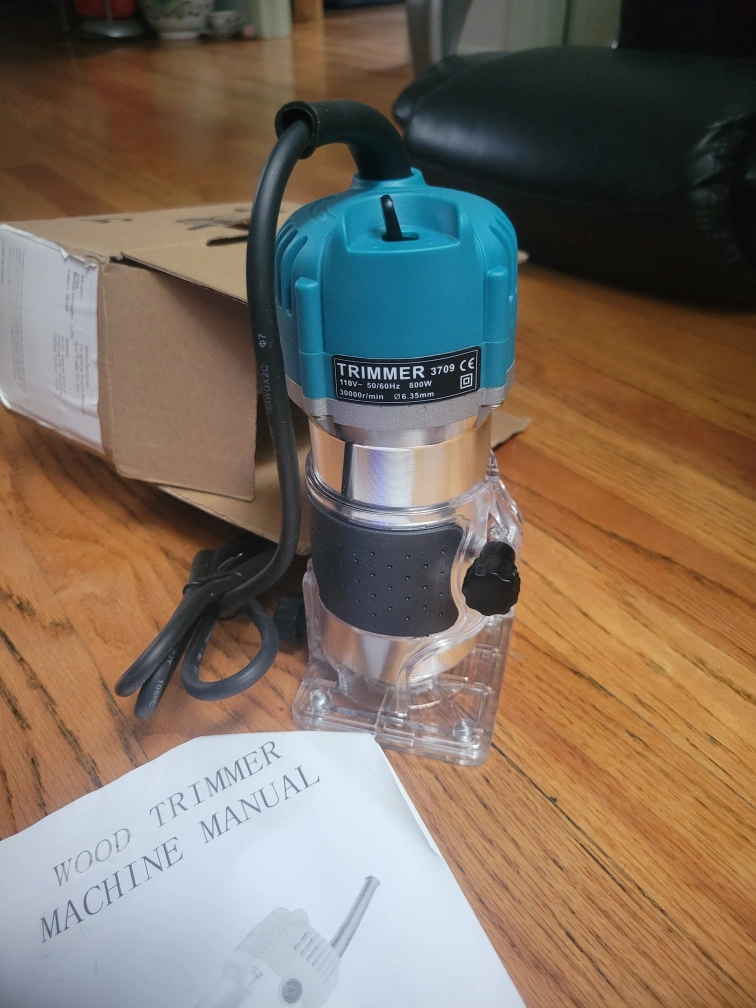 28Electric wood trimmer with power cord, manual, and attachments.brand new.800w