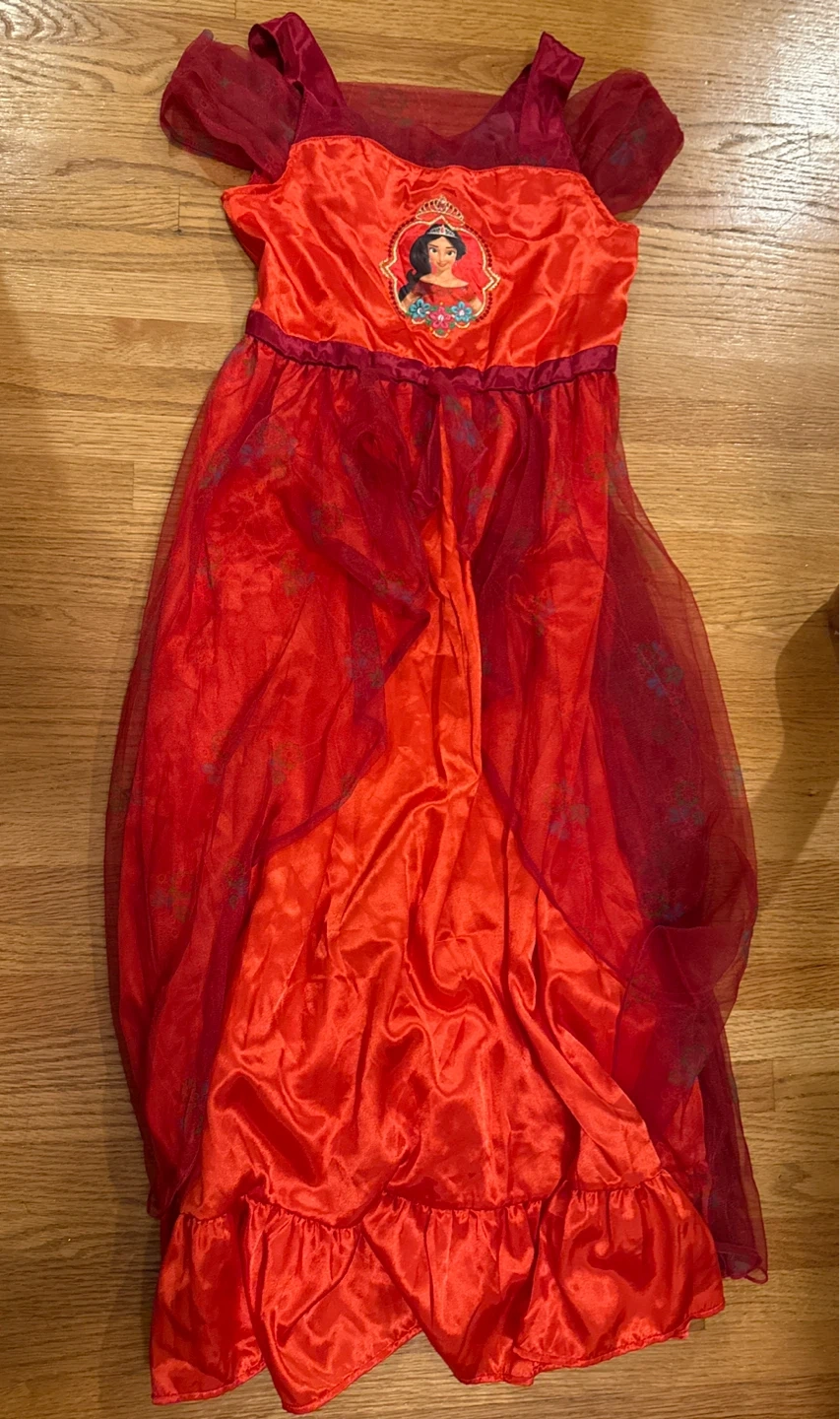 Selling a cute Elena of Avalor dress! It's in great condition and perfect for any fan of the show. The dress features a vibrant red color with sheer detailing and a character graphic on the front