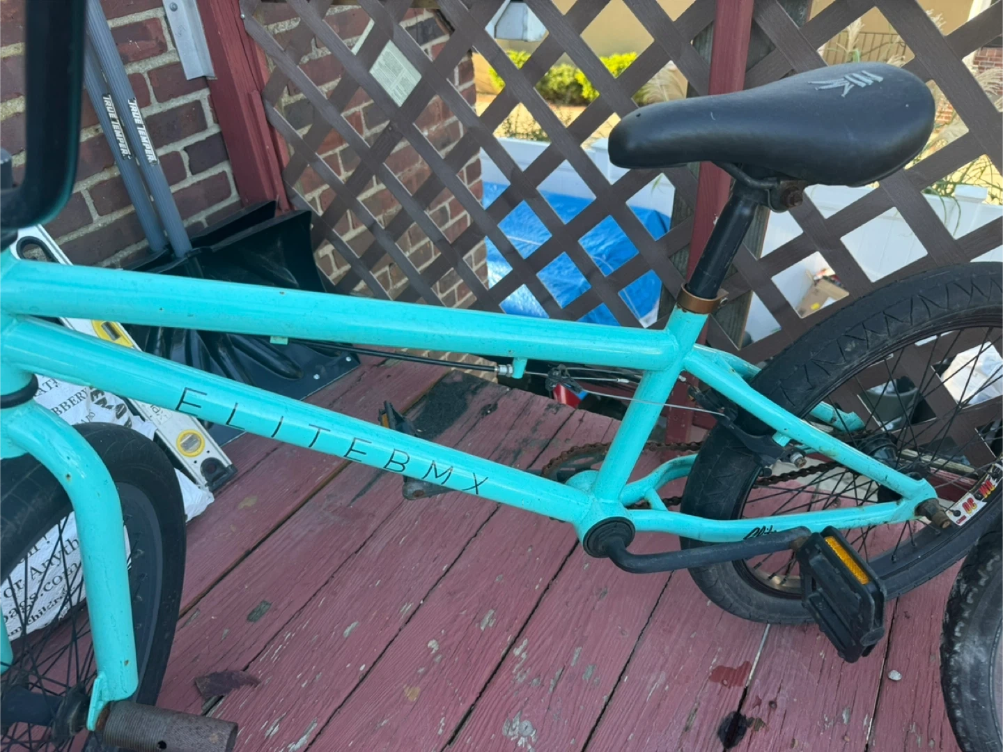 Selling an Elite BMX bike in a cool turquoise color! It's ready for some action and would be great for anyone looking to try out BMX or upgrade their current ride