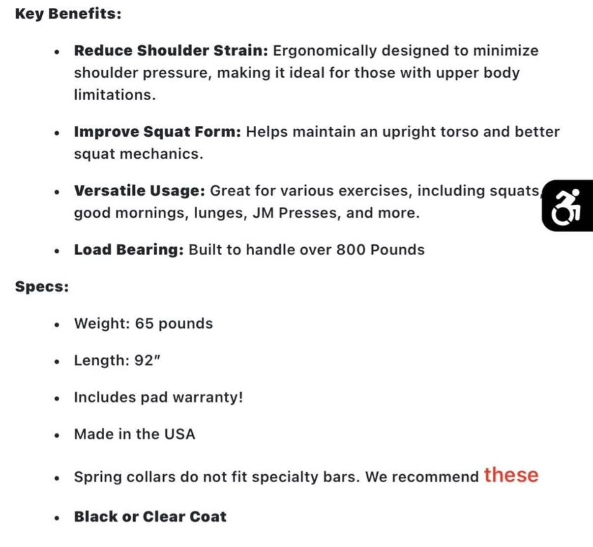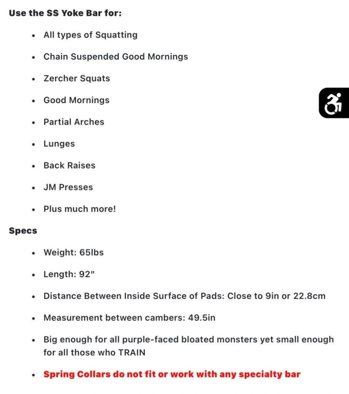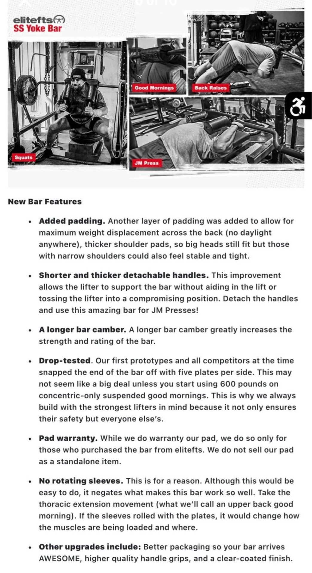 15EliteFTS SS Yoke Bar Olympic safety squat barbell Bar is extremely well balanced and the handles are removable Type: Olympic Brand: EliteFTS
