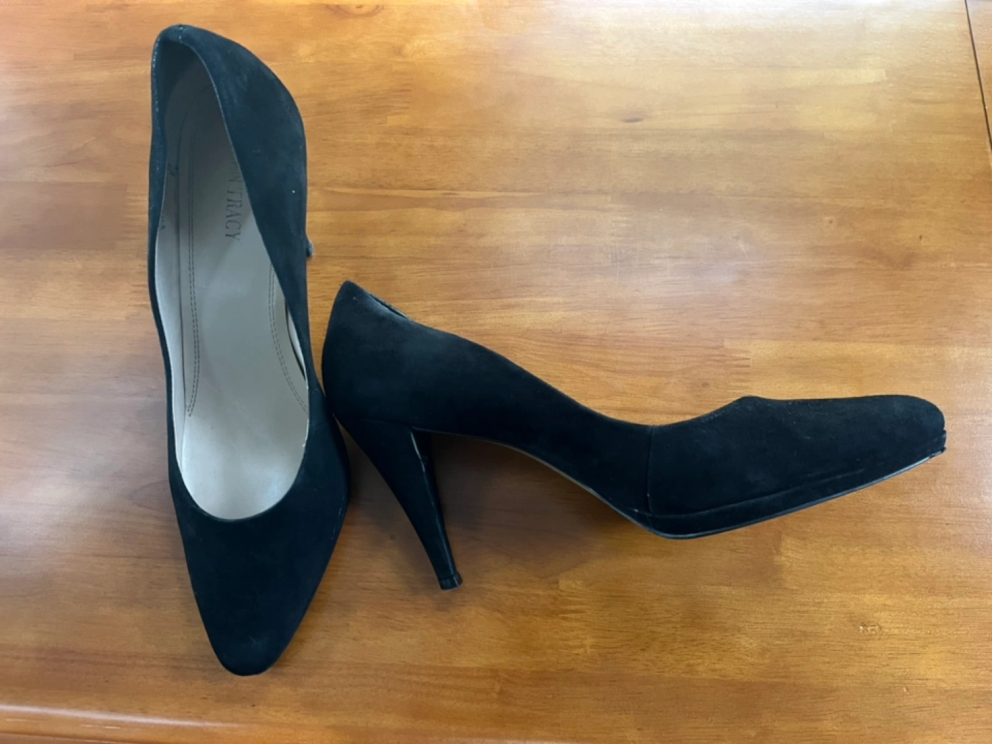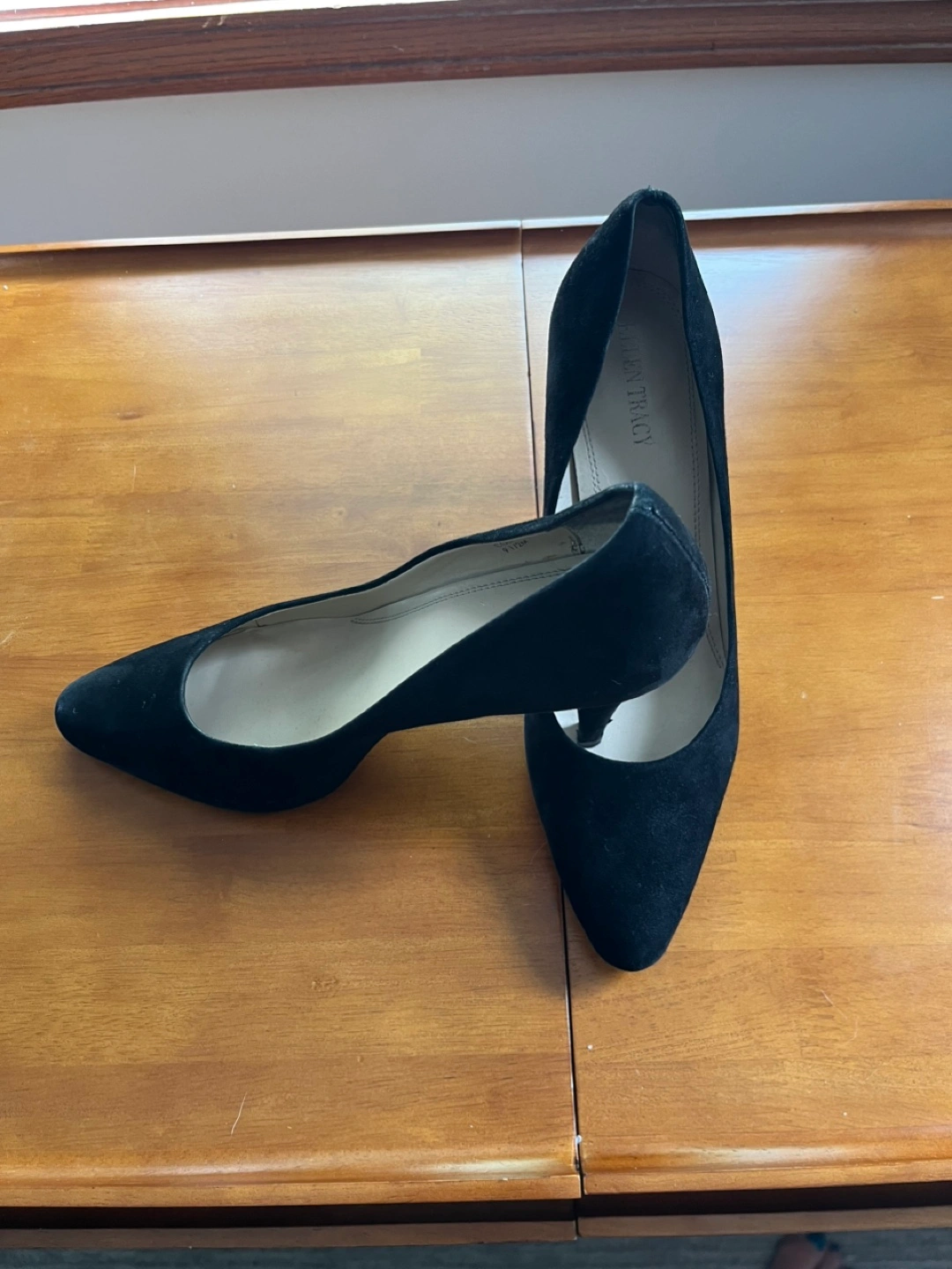 60The Ellen Tracy Women’s Black Suede Pumps with Almond Toe and 3 inch heels are a stylish and versatile shoe choice for women. These pumps feature a solid black color, a classic almond toe shape, and a comfortable medium width. Made from suede, these shoes are perfect for spring and summer seasons, adding a touch of sophistication to any outfit. With a brand known for quality and design, these pumps are a reliable and fashionable option for any woman's wardrobe.