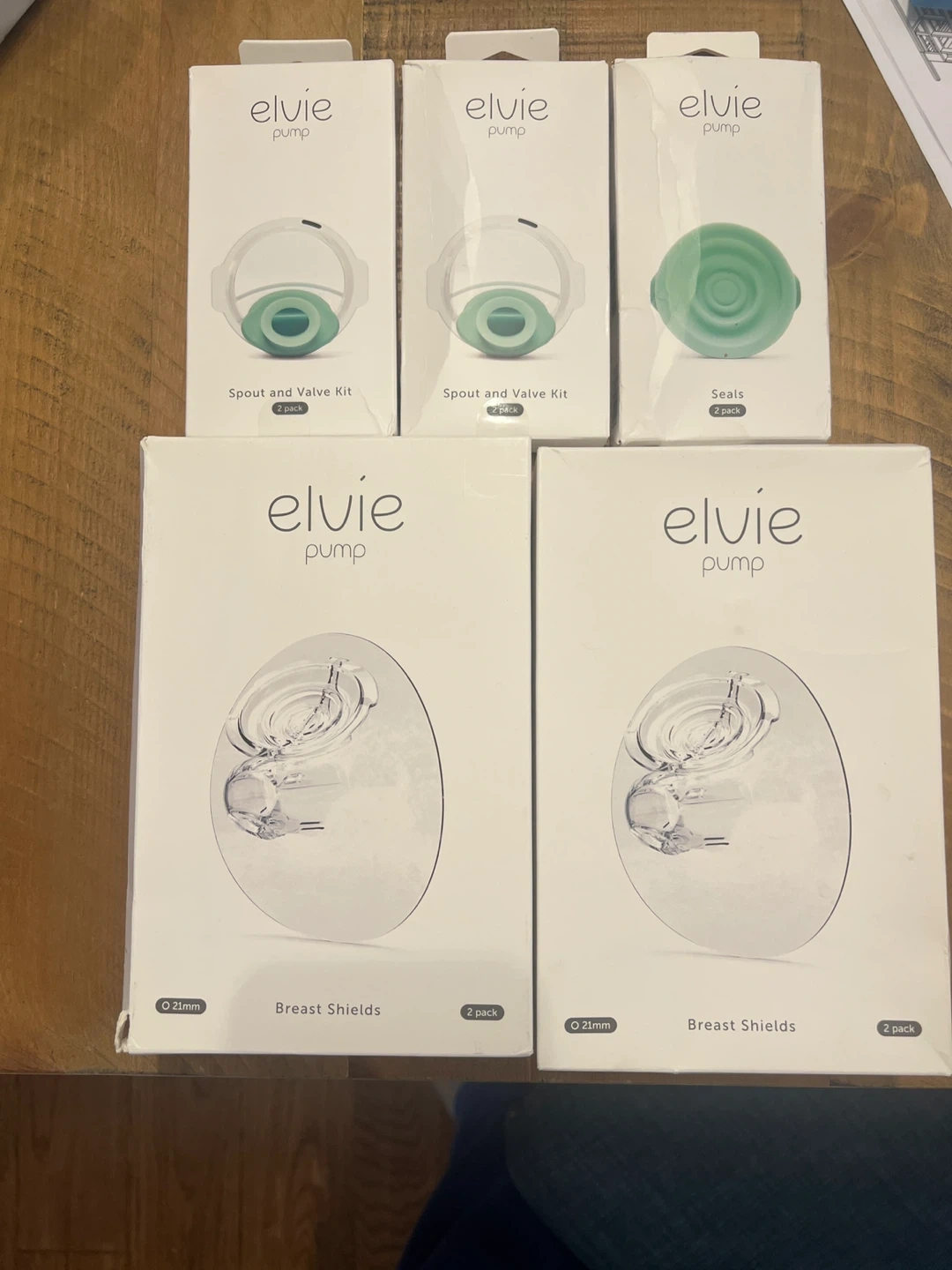 Selling a collection of Elvie pump accessories! Includes: - Two boxes of 21mm breast shields (2 pack each) - Two boxes of spout and valve kits (2 pack each) - One box of seals (2 pack) Perfect for anyone using an Elvie pump and needing extra parts or replacements