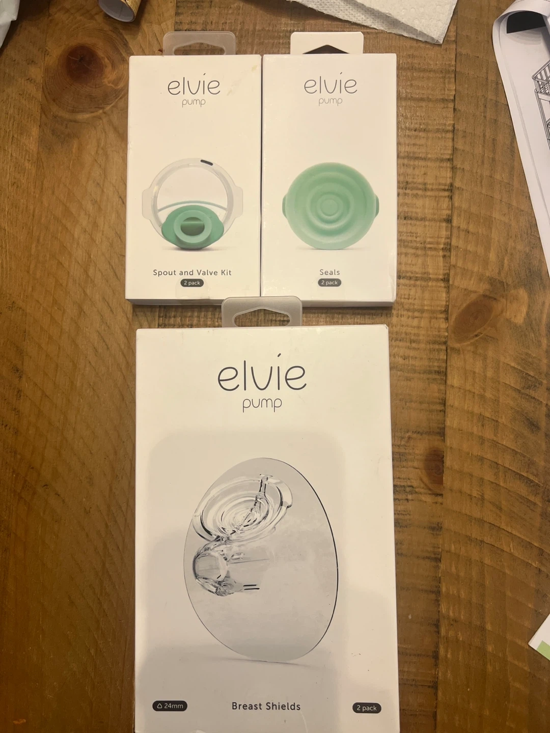 I'm selling Elvie pump accessories, including a spout and valve kit (2 pack), seals (2 pack), and 24mm breast shields (2 pack) Get all the essential parts you need for your Elvie pump!